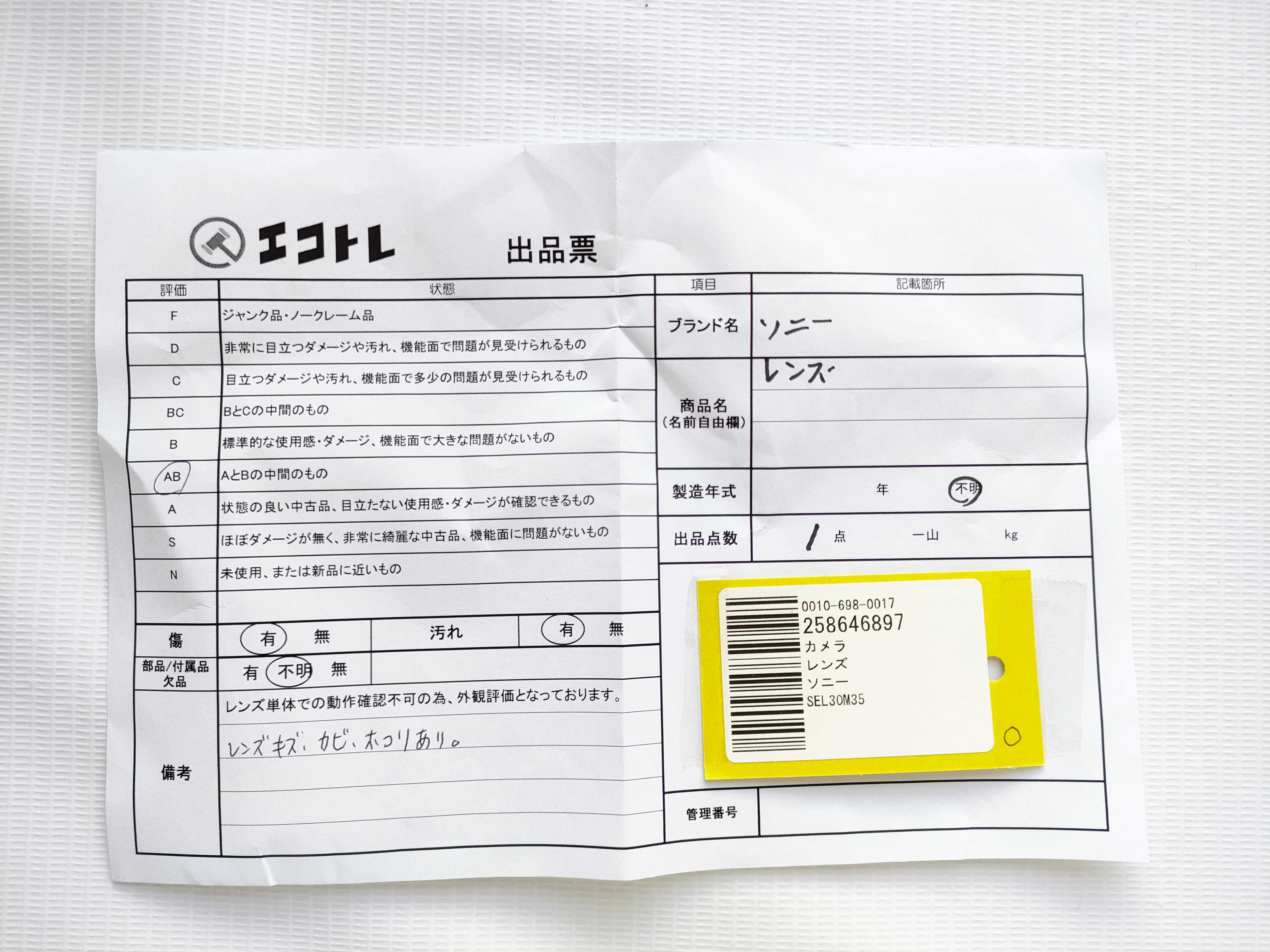商品内容によって、JITBOXなどでの発送となる可能性がございます事ご理解下さい。年式などの商品情報詳細は写真にてご確認願います。※ご入札の際はご利用規約をよくお読みになってからのご参加お願いします。","タイプライン":"","カテゴリ":"カメラ","形状コード":"レンズ","付属品コード":"","シリアル・シール・型番":""