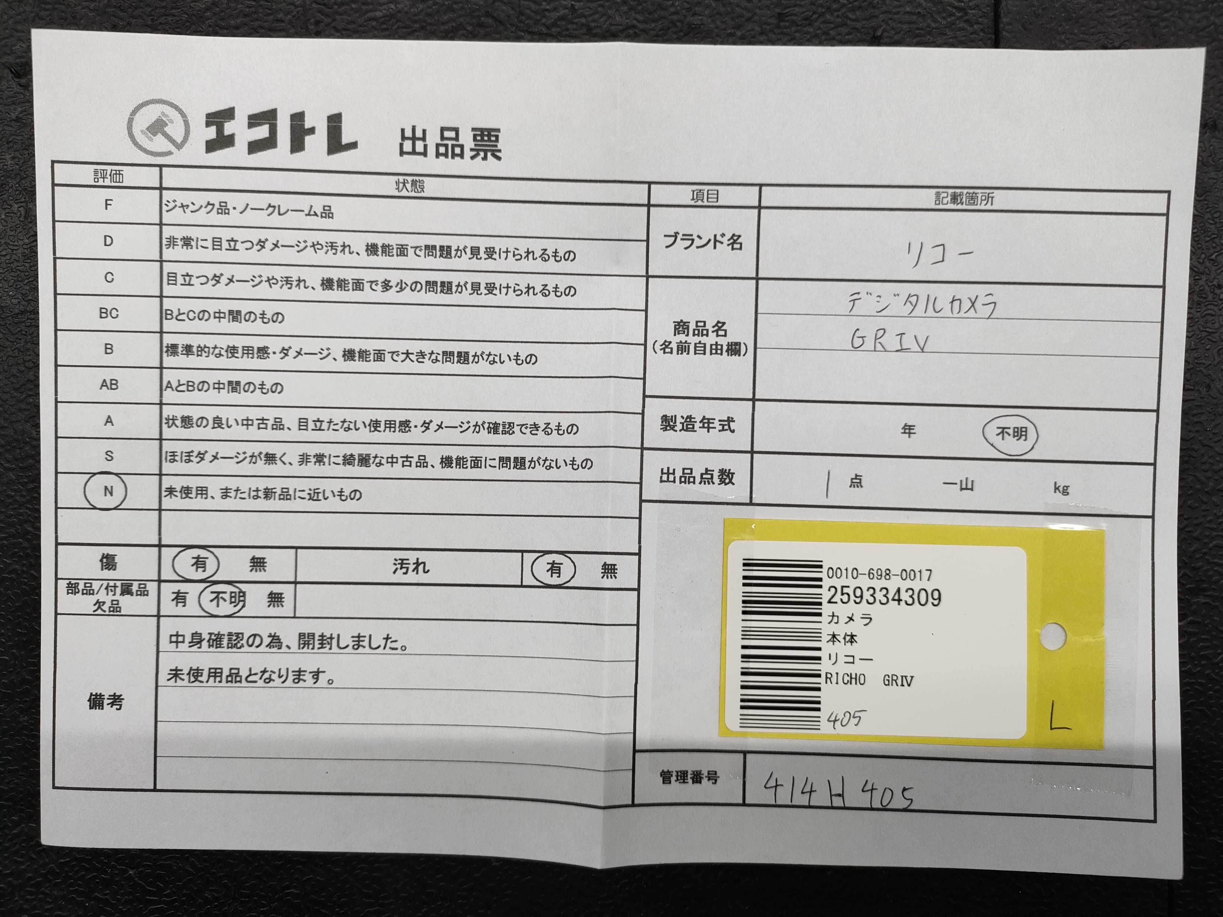商品内容によって、JITBOXなどでの発送となる可能性がございます事ご理解下さい。年式などの商品情報詳細は写真にてご確認願います。※ご入札の際はご利用規約をよくお読みになってからのご参加お願いします。","タイプライン":"","カテゴリ":"カメラ","形状コード":"カメラ","付属品コード":"","シリアル・シール・型番":""