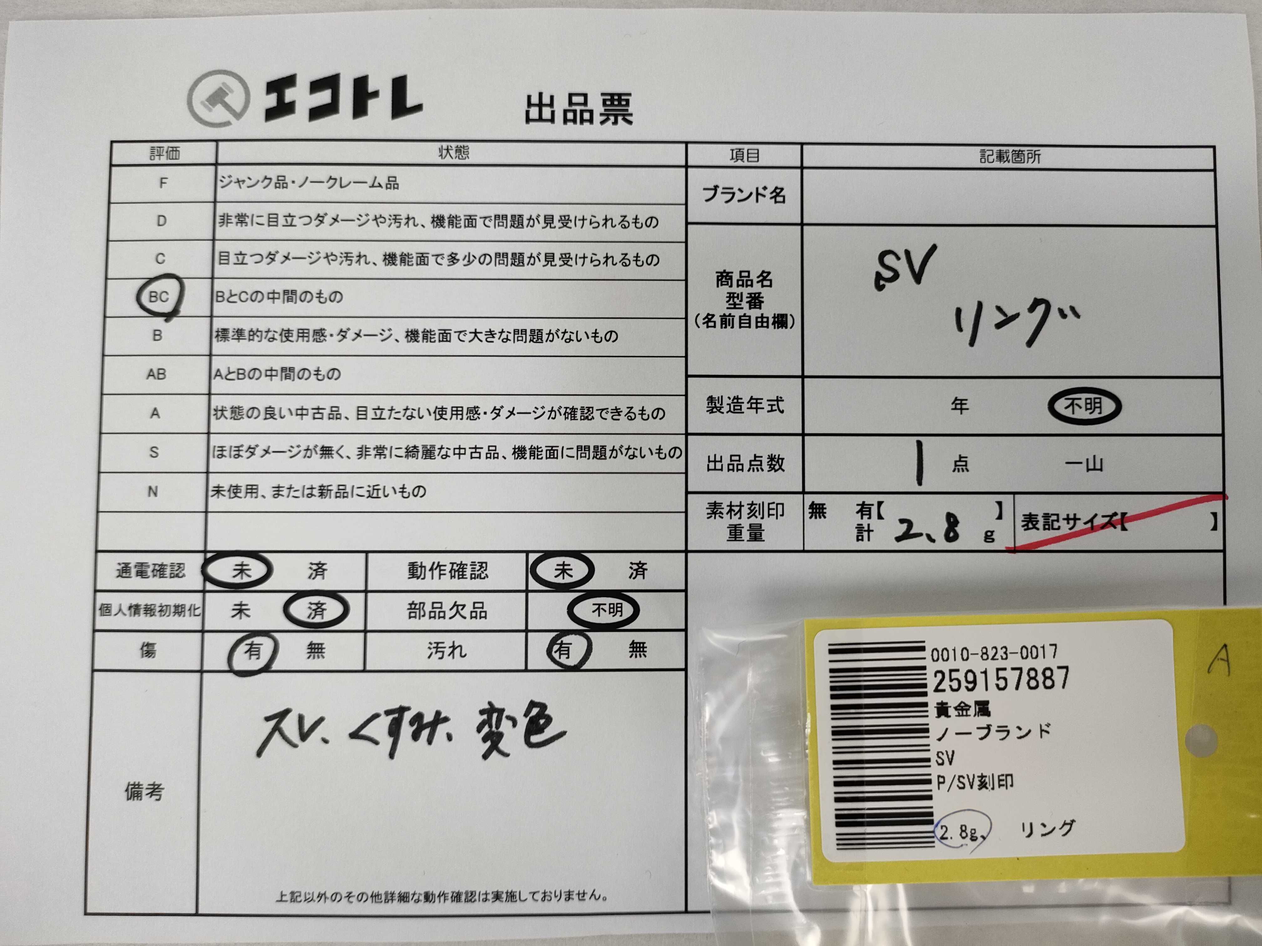 (C_0027)▼P/SV刻印 SV 2.8g リング(貴金属)