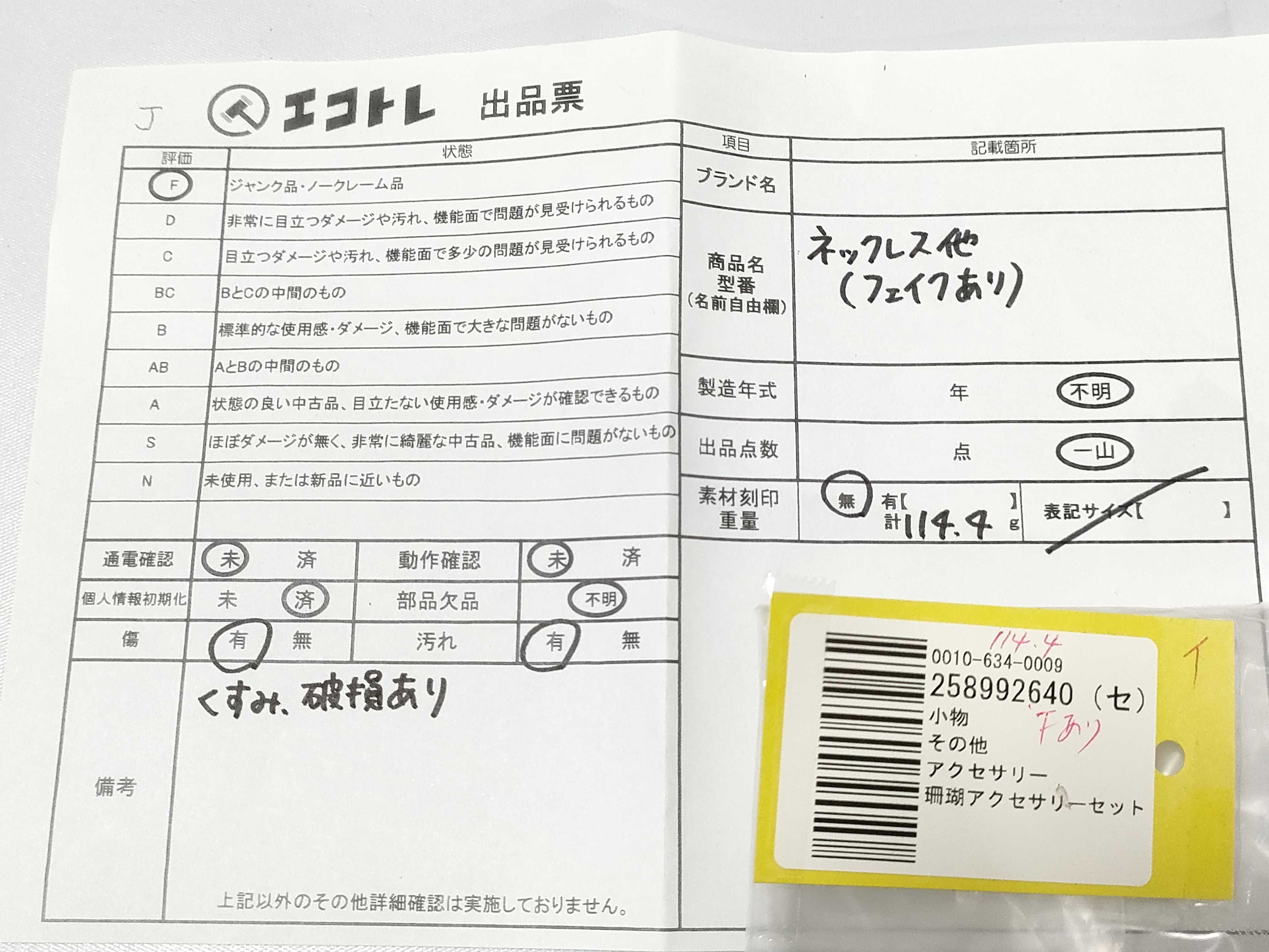 商品内容によって、JITBOXなどでの発送となる可能性がございます事ご理解下さい。年式などの商品情報詳細は写真にてご確認願います。※ご入札の際はご利用規約をよくお読みになってからのご参加お願いします。","タイプライン":"","カテゴリ":"アクセサリー","形状コード":"ネックレス","付属品コード":"","シリアル・シール・型番":""