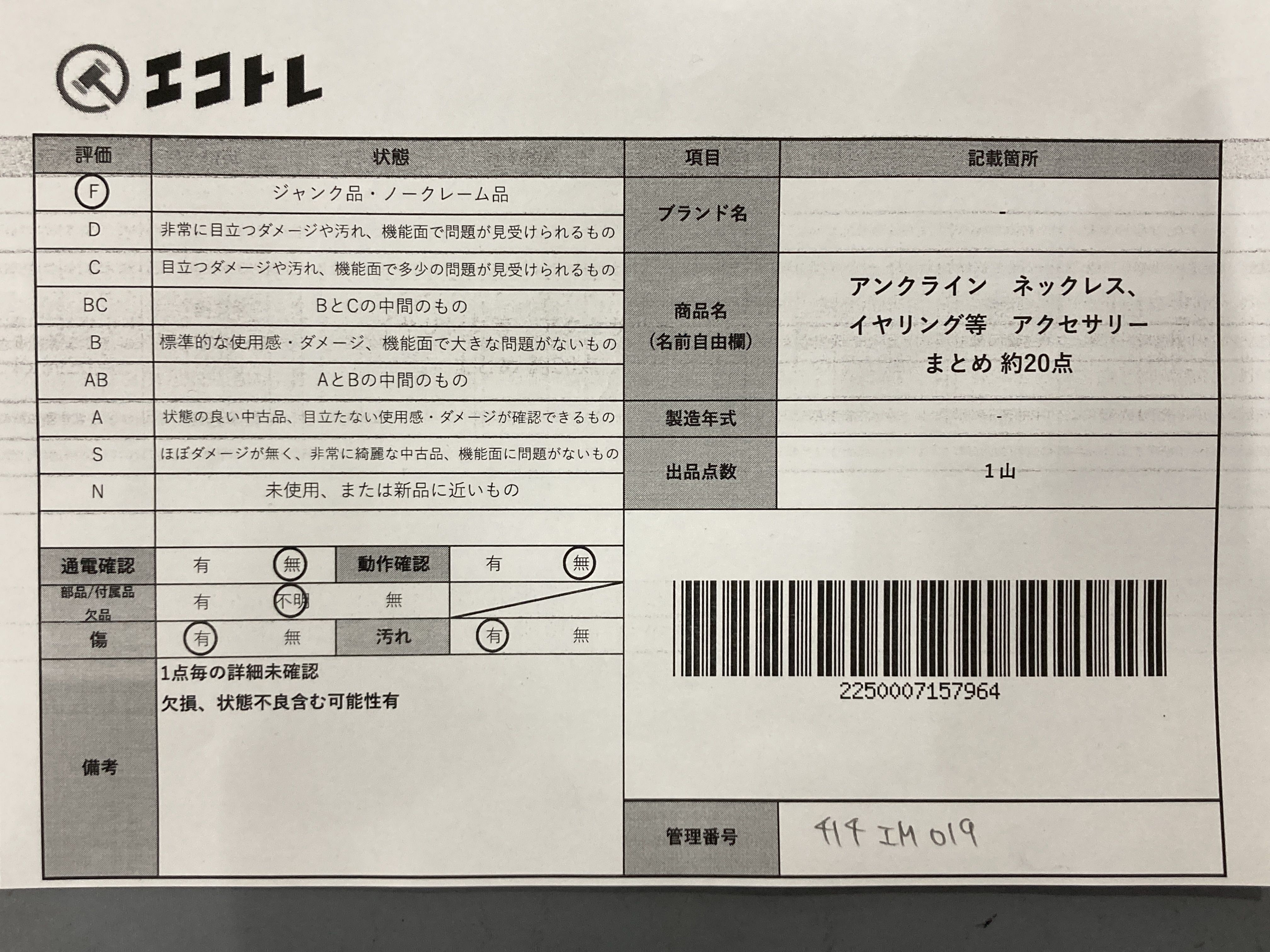 商品内容によって、JITBOXなどでの発送となる可能性がございます事ご理解下さい。年式などの商品情報詳細は写真にてご確認願います。※ご入札の際はご利用規約をよくお読みになってからのご参加お願いします。","タイプライン":"","カテゴリ":"アクセサリー","形状コード":"アクセサリーまとめ","付属品コード":"","シリアル・シール・型番":""