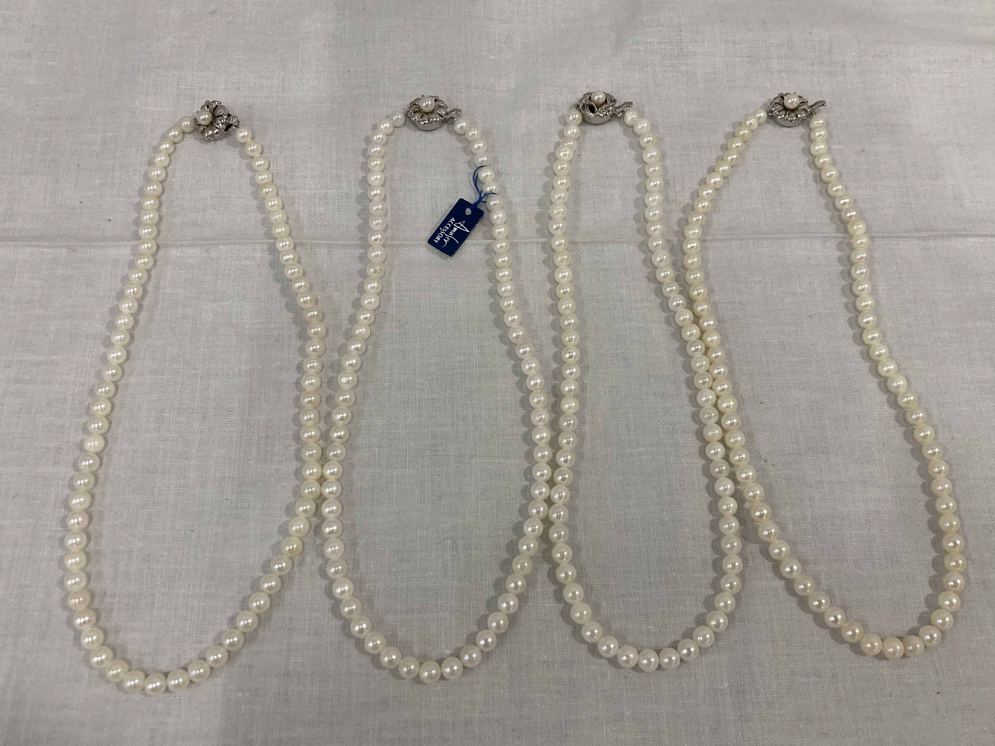 (C_0274)▼パールネックレス 本真珠 あこや まとめ セット SILVER刻印 デッドストック品 アクセサリーまとめ(アクセサリー)