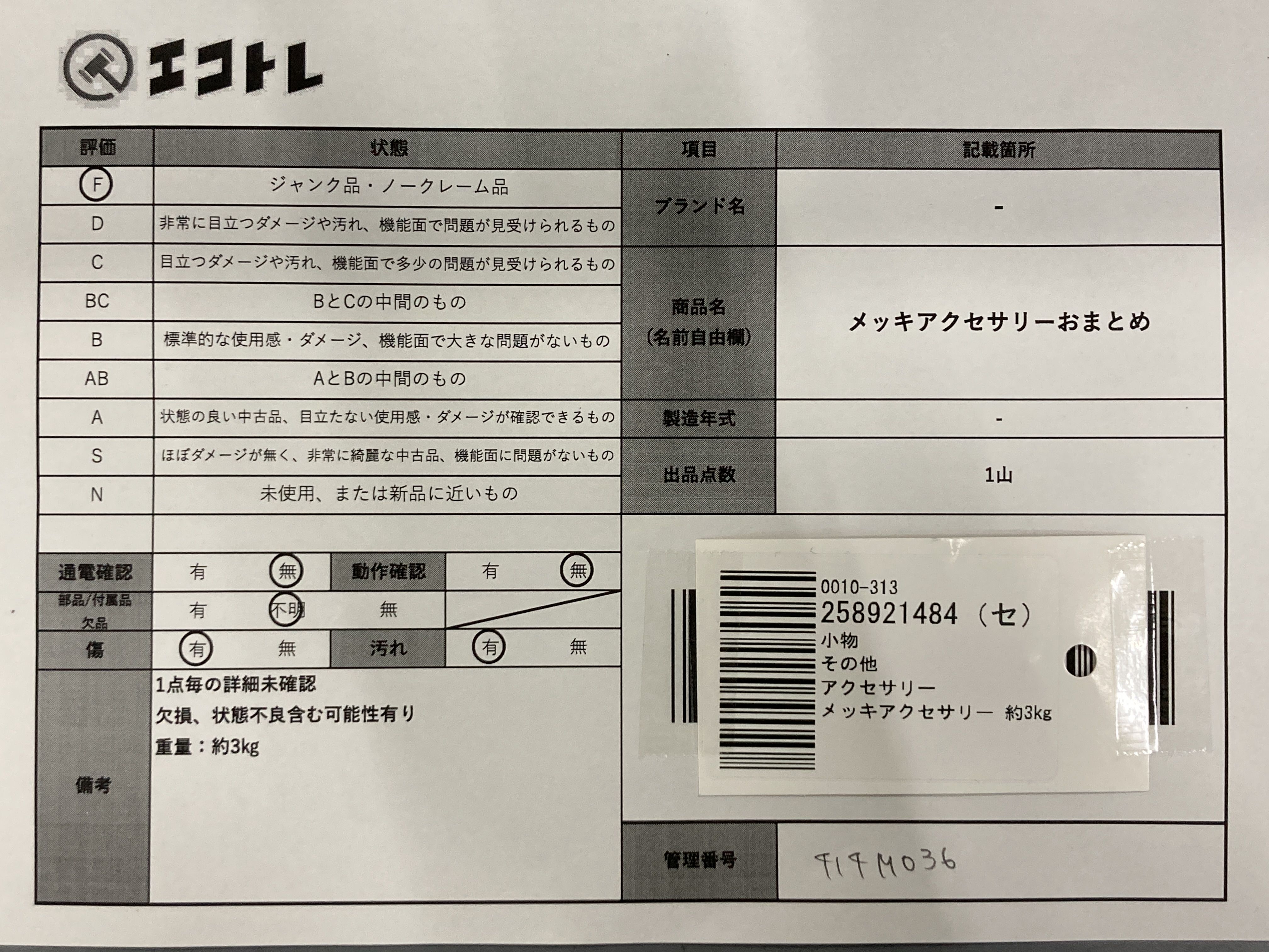 商品内容によって、JITBOXなどでの発送となる可能性がございます事ご理解下さい。年式などの商品情報詳細は写真にてご確認願います。※ご入札の際はご利用規約をよくお読みになってからのご参加お願いします。","タイプライン":"","カテゴリ":"アクセサリー","形状コード":"アクセサリーまとめ","付属品コード":"","シリアル・シール・型番":""