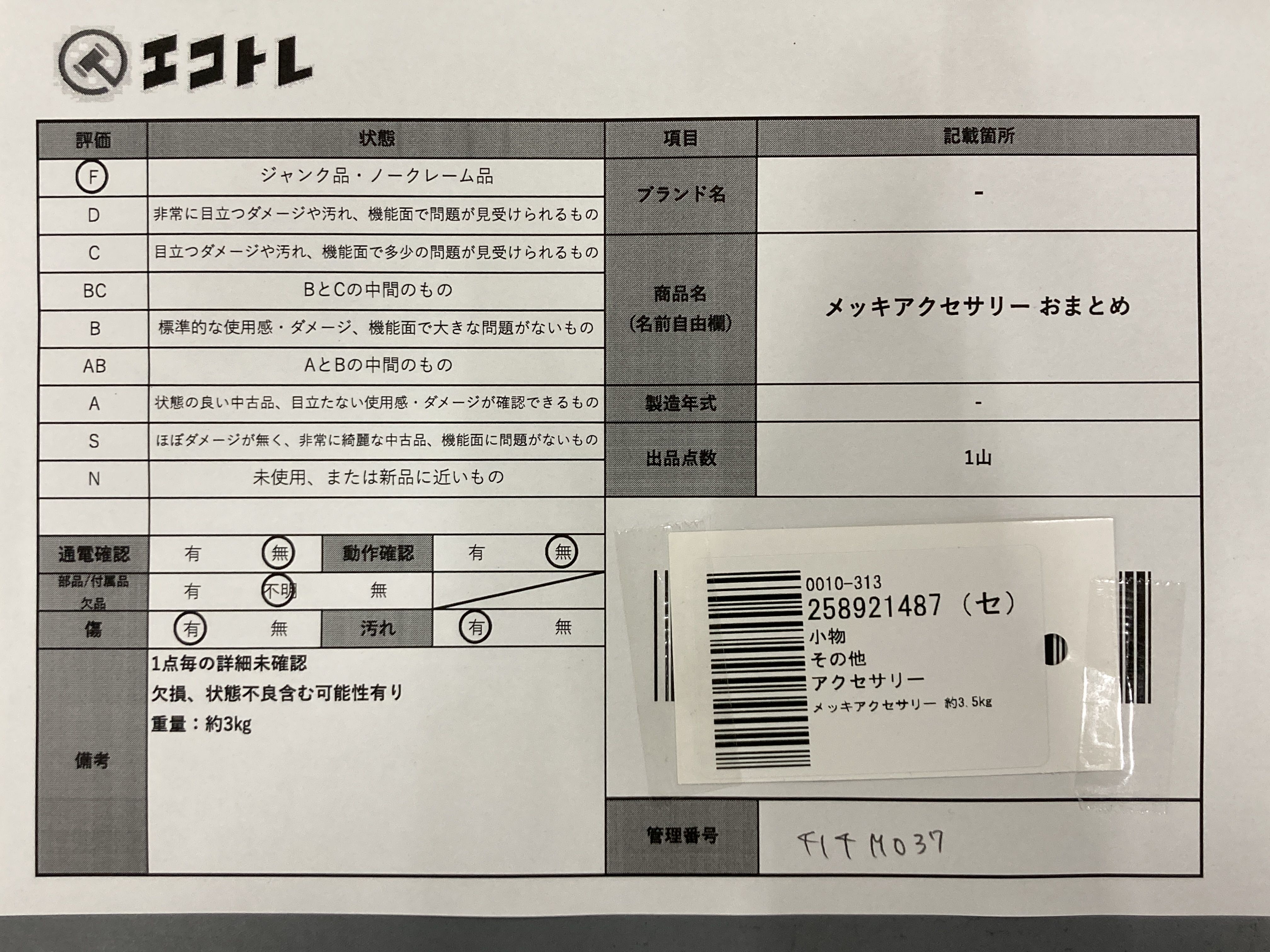 商品内容によって、JITBOXなどでの発送となる可能性がございます事ご理解下さい。年式などの商品情報詳細は写真にてご確認願います。※ご入札の際はご利用規約をよくお読みになってからのご参加お願いします。","タイプライン":"","カテゴリ":"アクセサリー","形状コード":"アクセサリーまとめ","付属品コード":"","シリアル・シール・型番":""
