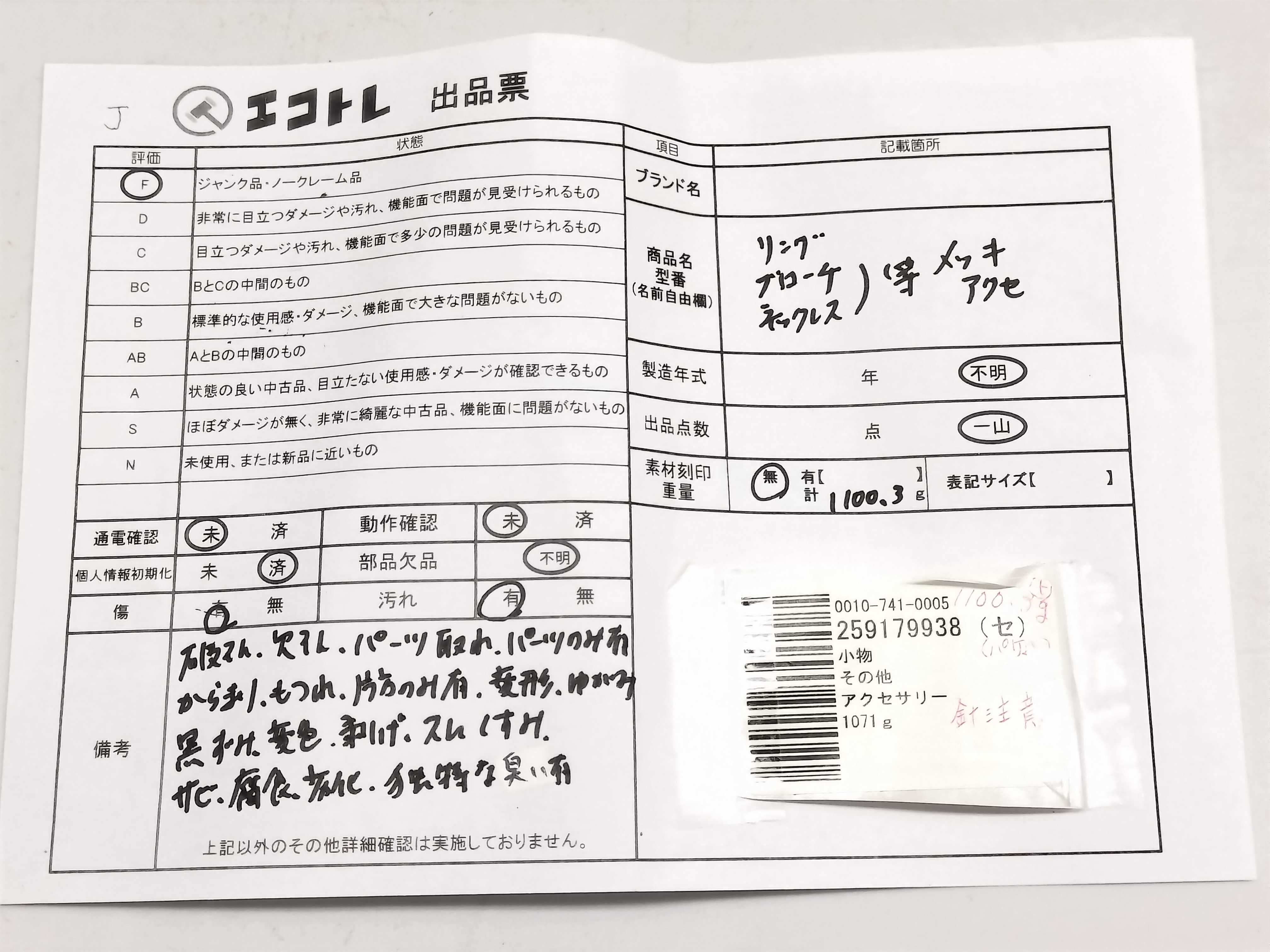 商品内容によって、JITBOXなどでの発送となる可能性がございます事ご理解下さい。年式などの商品情報詳細は写真にてご確認願います。※ご入札の際はご利用規約をよくお読みになってからのご参加お願いします。","タイプライン":"","カテゴリ":"アクセサリー","形状コード":"アクセサリーまとめ","付属品コード":"","シリアル・シール・型番":""