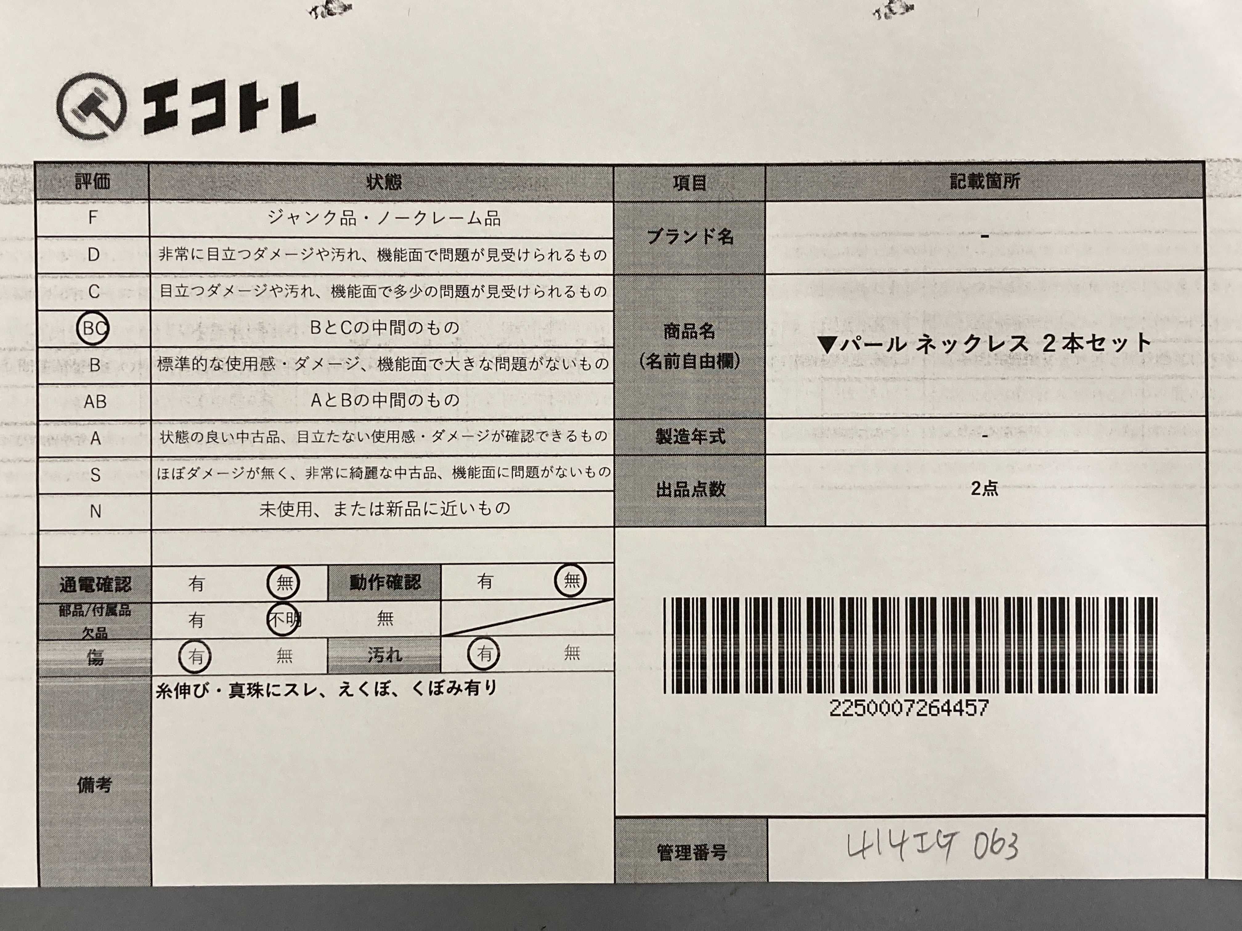 商品内容によって、JITBOXなどでの発送となる可能性がございます事ご理解下さい。年式などの商品情報詳細は写真にてご確認願います。※ご入札の際はご利用規約をよくお読みになってからのご参加お願いします。","タイプライン":"","カテゴリ":"アクセサリー","形状コード":"ネックレス","付属品コード":"","シリアル・シール・型番":""