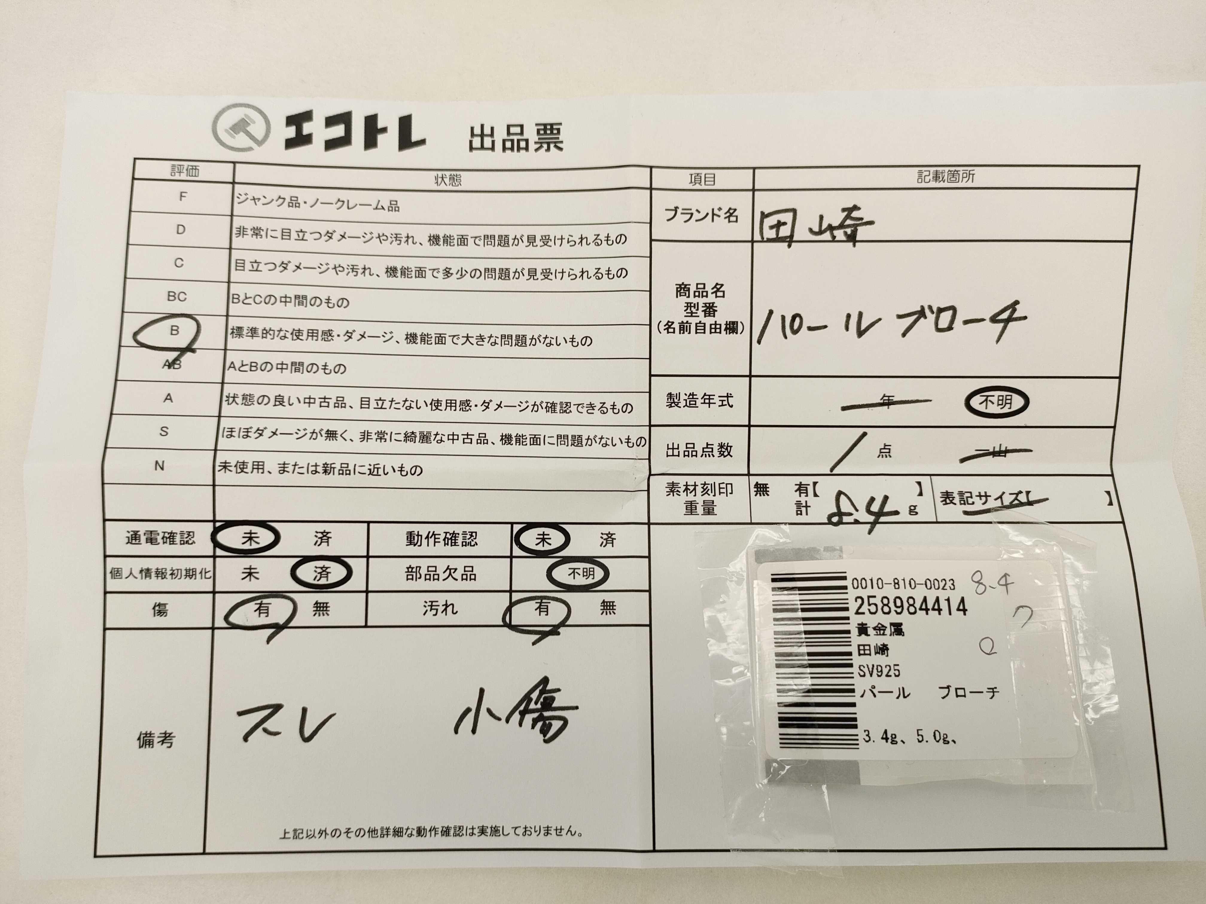 商品内容によって、JITBOXなどでの発送となる可能性がございます事ご理解下さい。年式などの商品情報詳細は写真にてご確認願います。※ご入札の際はご利用規約をよくお読みになってからのご参加お願いします。","タイプライン":"","カテゴリ":"アクセサリー","形状コード":"ブローチ","付属品コード":"","シリアル・シール・型番":""