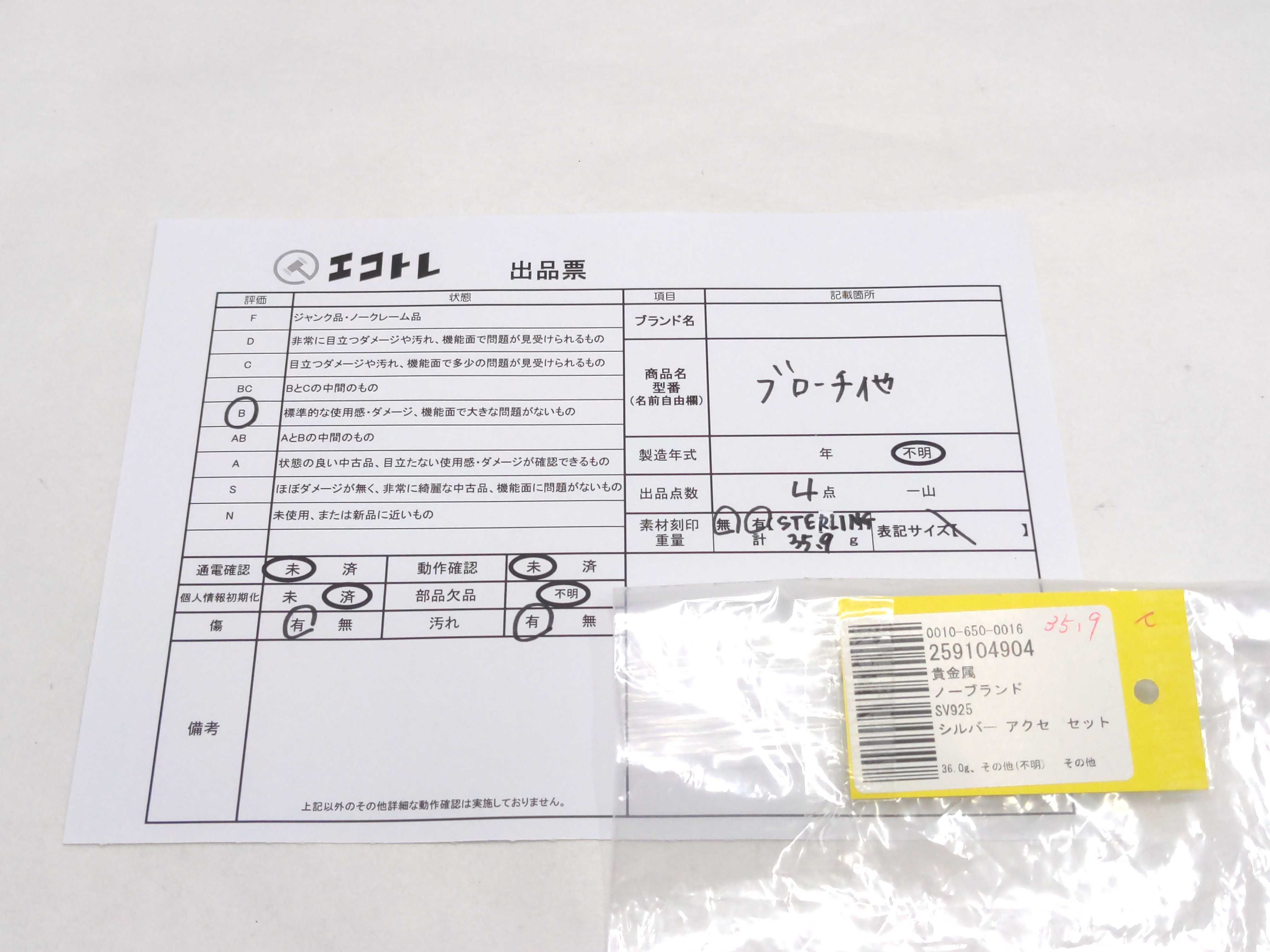 商品内容によって、JITBOXなどでの発送となる可能性がございます事ご理解下さい。年式などの商品情報詳細は写真にてご確認願います。※ご入札の際はご利用規約をよくお読みになってからのご参加お願いします。","タイプライン":"","カテゴリ":"アクセサリー","形状コード":"ブローチ","付属品コード":"","シリアル・シール・型番":""