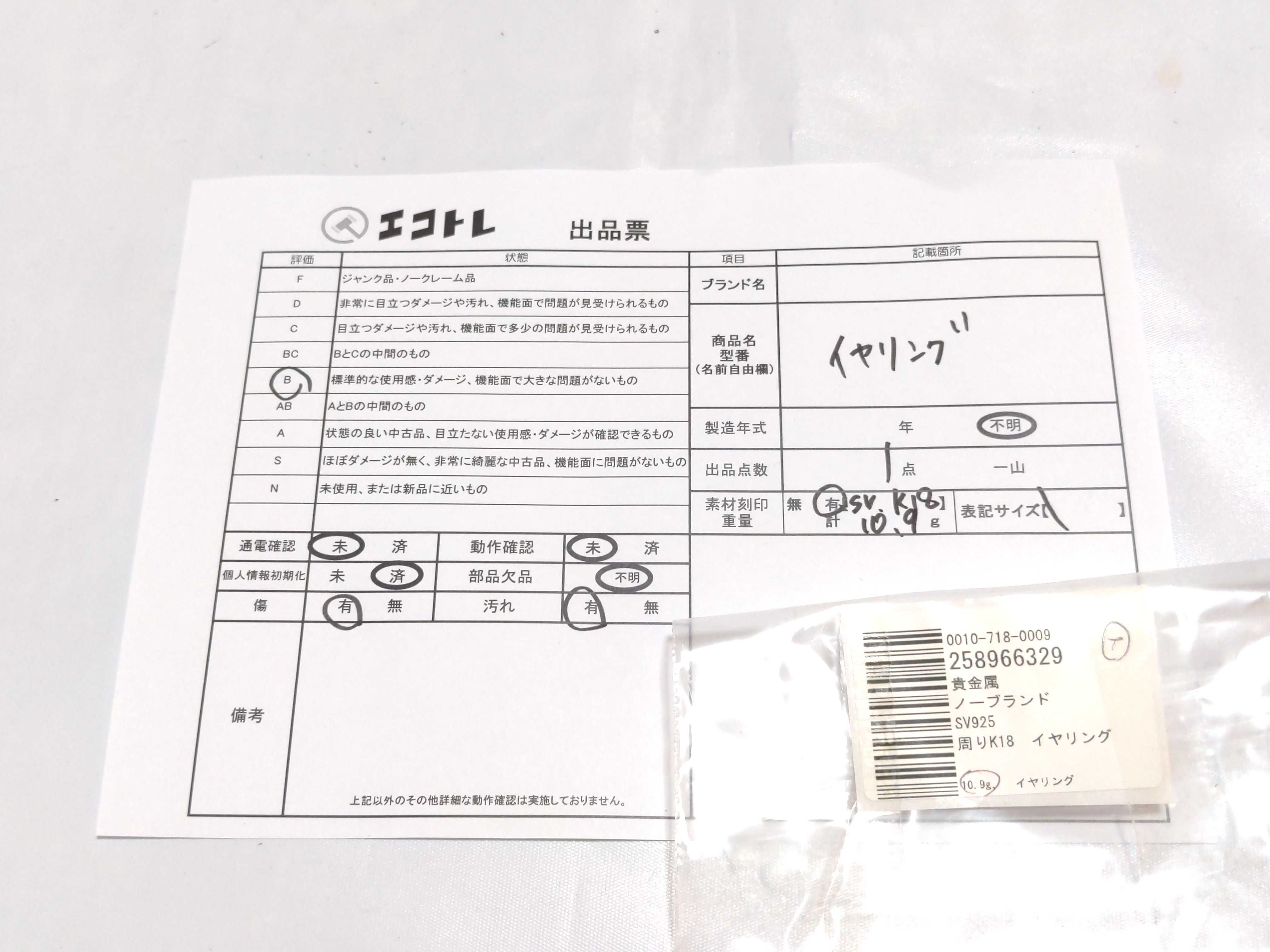 商品内容によって、JITBOXなどでの発送となる可能性がございます事ご理解下さい。年式などの商品情報詳細は写真にてご確認願います。※ご入札の際はご利用規約をよくお読みになってからのご参加お願いします。","タイプライン":"","カテゴリ":"アクセサリー","形状コード":"イヤリング","付属品コード":"","シリアル・シール・型番":""