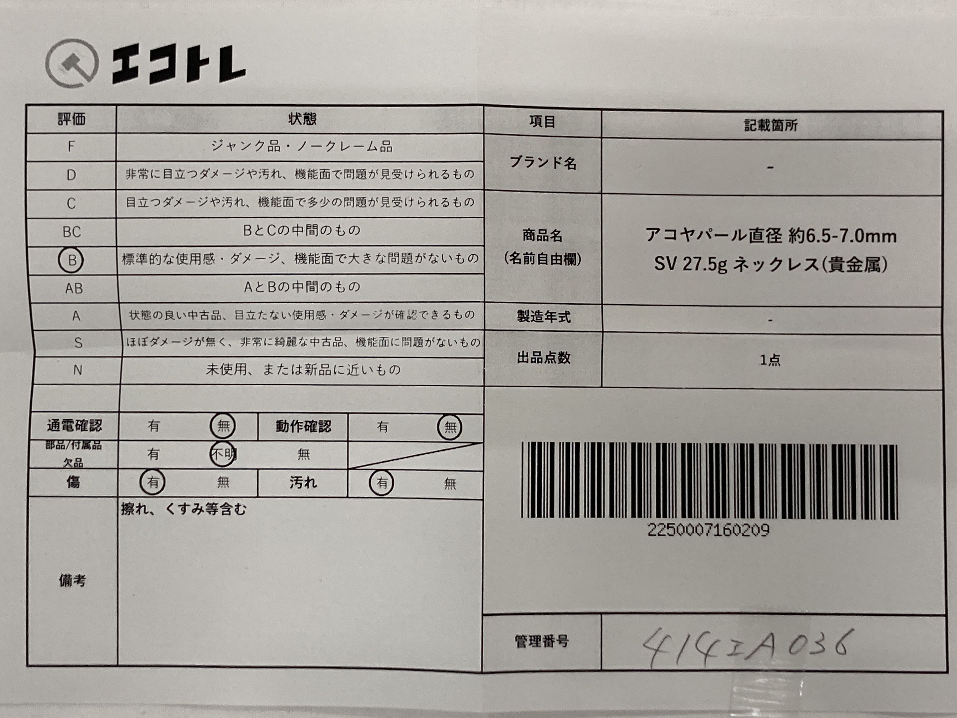 商品内容によって、JITBOXなどでの発送となる可能性がございます事ご理解下さい。年式などの商品情報詳細は写真にてご確認願います。※ご入札の際はご利用規約をよくお読みになってからのご参加お願いします。","タイプライン":"","カテゴリ":"アクセサリー","形状コード":"ネックレス","付属品コード":"","シリアル・シール・型番":""