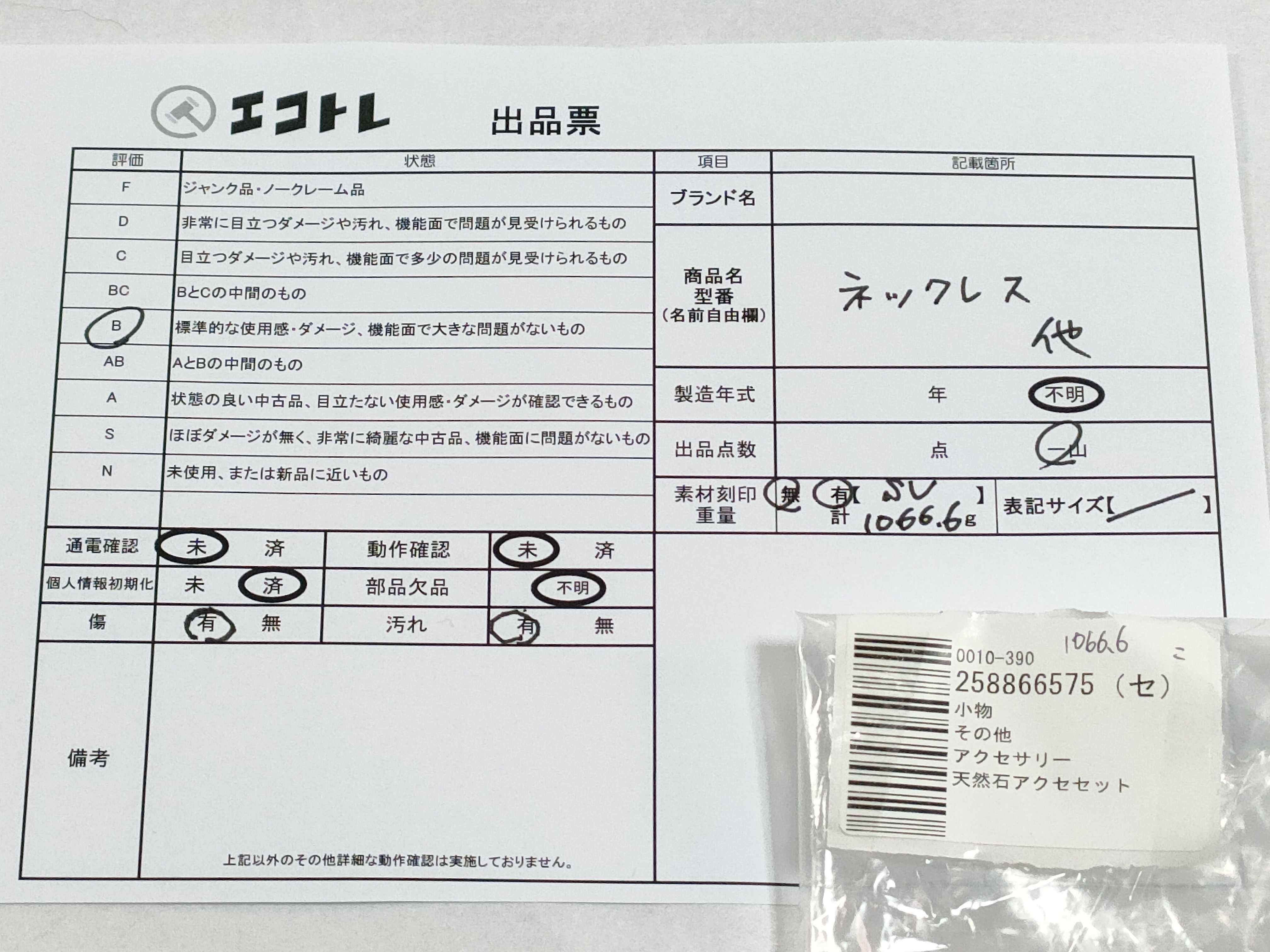 商品内容によって、JITBOXなどでの発送となる可能性がございます事ご理解下さい。年式などの商品情報詳細は写真にてご確認願います。※ご入札の際はご利用規約をよくお読みになってからのご参加お願いします。","タイプライン":"","カテゴリ":"アクセサリー","形状コード":"ネックレス","付属品コード":"","シリアル・シール・型番":""