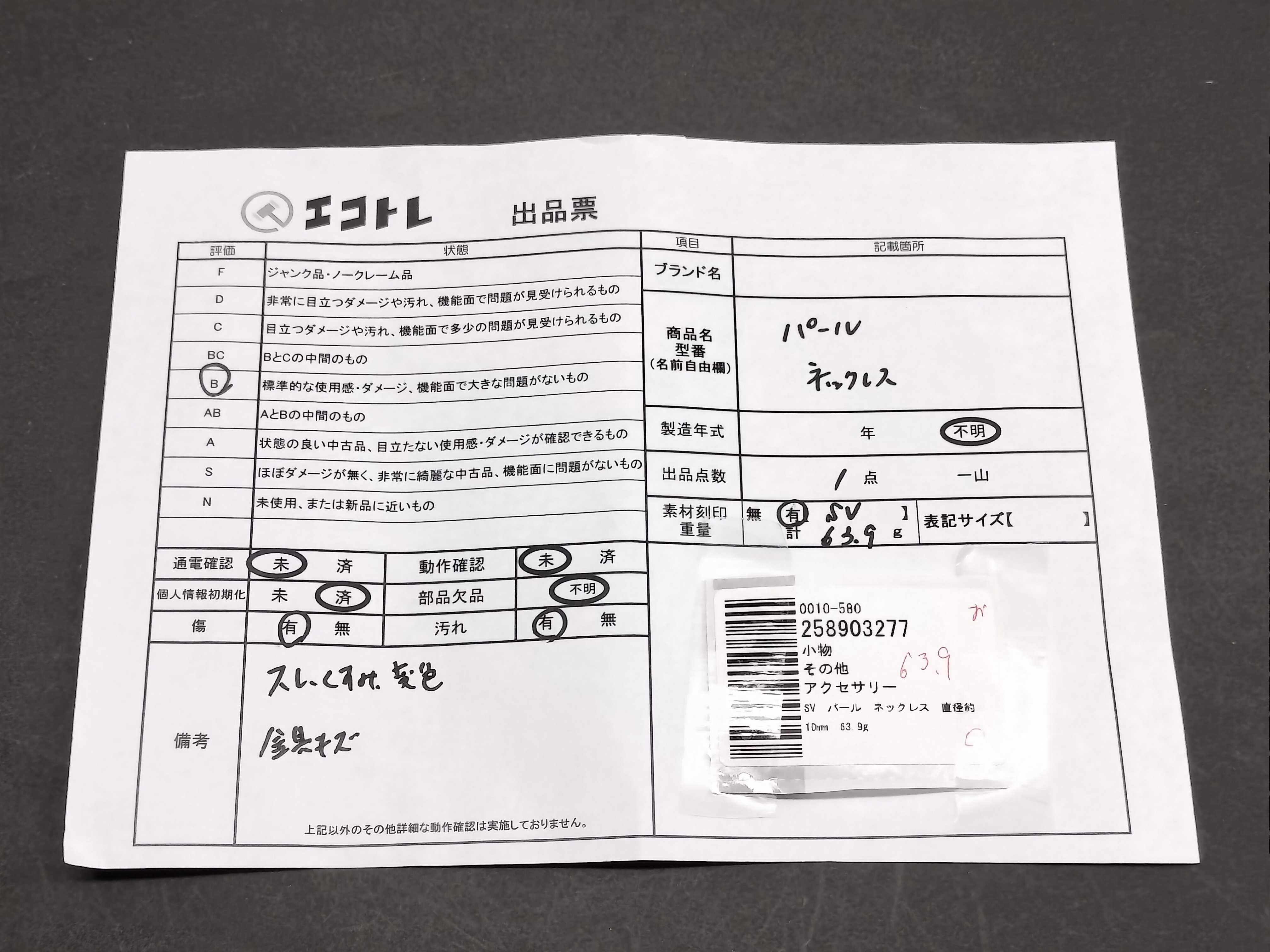 商品内容によって、JITBOXなどでの発送となる可能性がございます事ご理解下さい。年式などの商品情報詳細は写真にてご確認願います。※ご入札の際はご利用規約をよくお読みになってからのご参加お願いします。","タイプライン":"","カテゴリ":"アクセサリー","形状コード":"ネックレス","付属品コード":"","シリアル・シール・型番":""