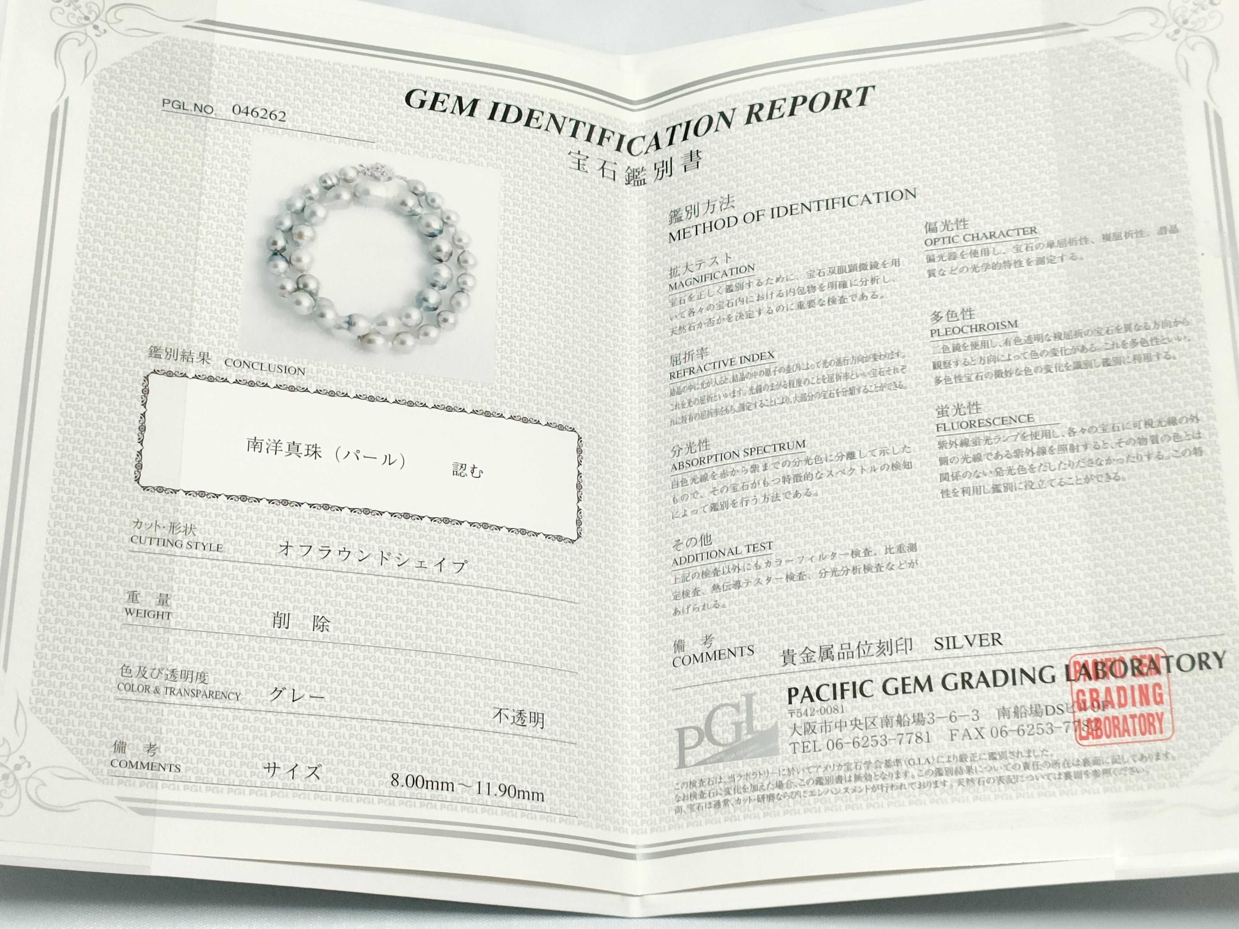(C_0803)▼南洋パール ネックレス グレー SV