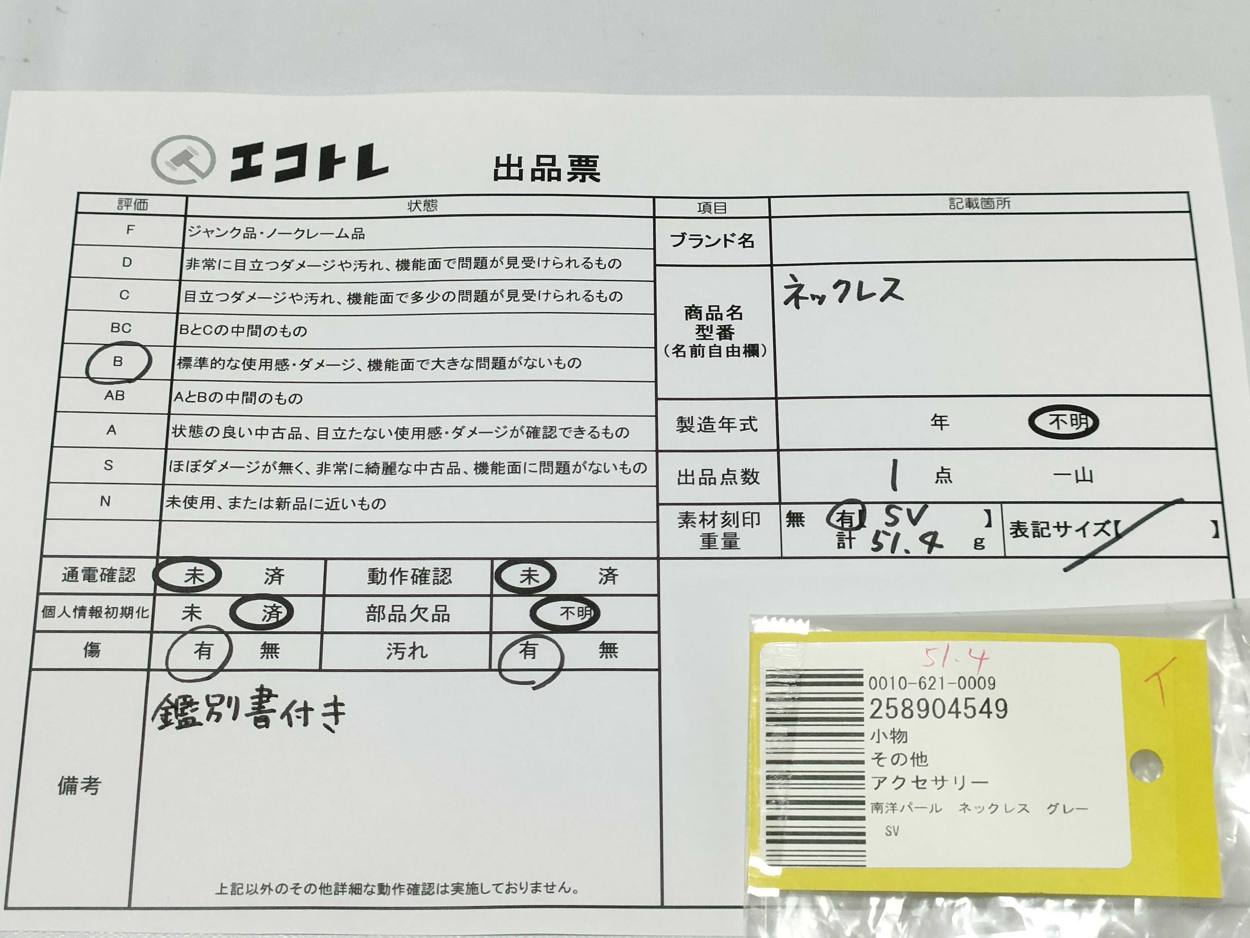 商品内容によって、JITBOXなどでの発送となる可能性がございます事ご理解下さい。年式などの商品情報詳細は写真にてご確認願います。※ご入札の際はご利用規約をよくお読みになってからのご参加お願いします。","タイプライン":"","カテゴリ":"アクセサリー","形状コード":"ネックレス","付属品コード":"","シリアル・シール・型番":""