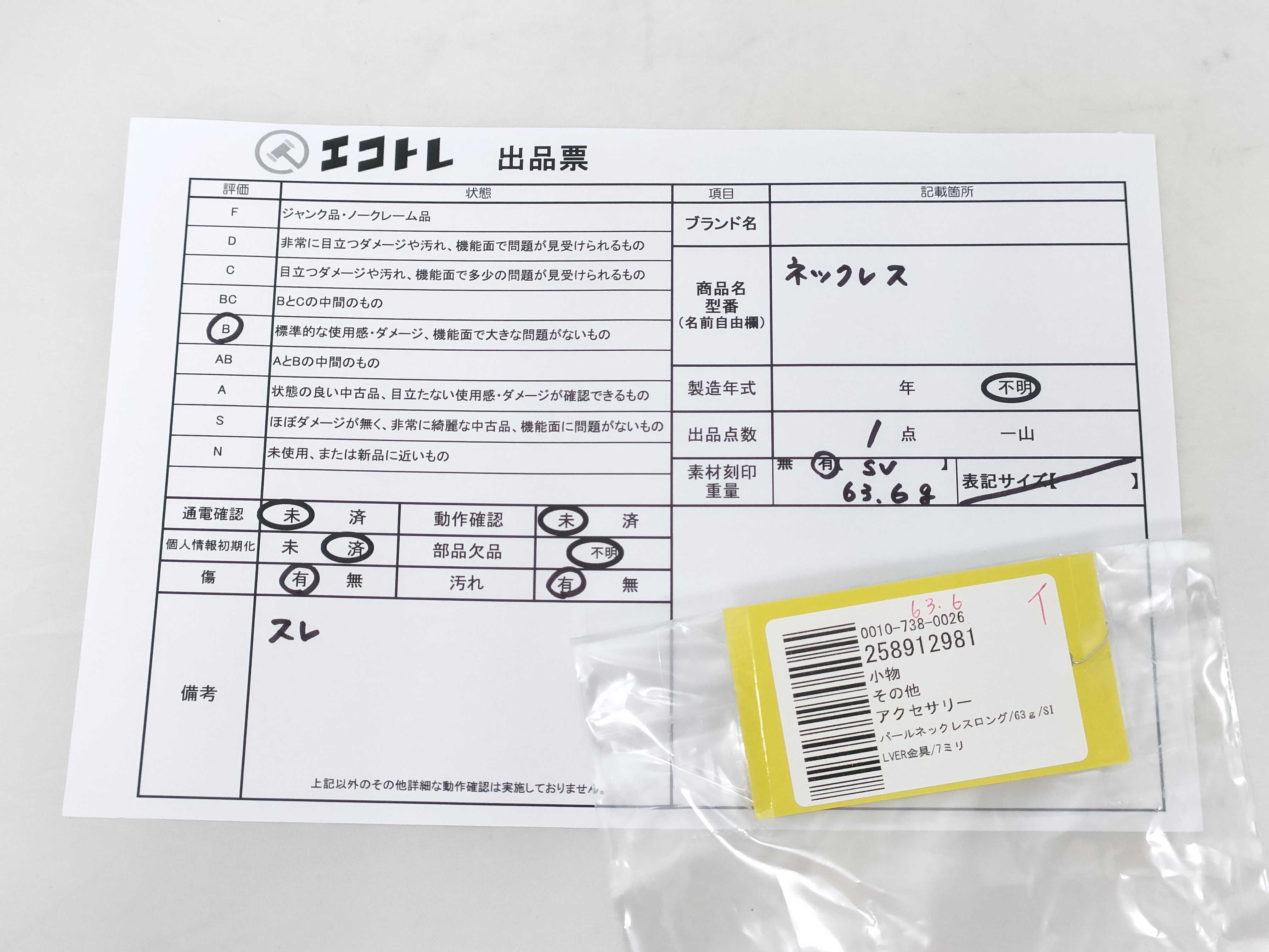 商品内容によって、JITBOXなどでの発送となる可能性がございます事ご理解下さい。年式などの商品情報詳細は写真にてご確認願います。※ご入札の際はご利用規約をよくお読みになってからのご参加お願いします。","タイプライン":"","カテゴリ":"アクセサリー","形状コード":"ネックレス","付属品コード":"","シリアル・シール・型番":""
