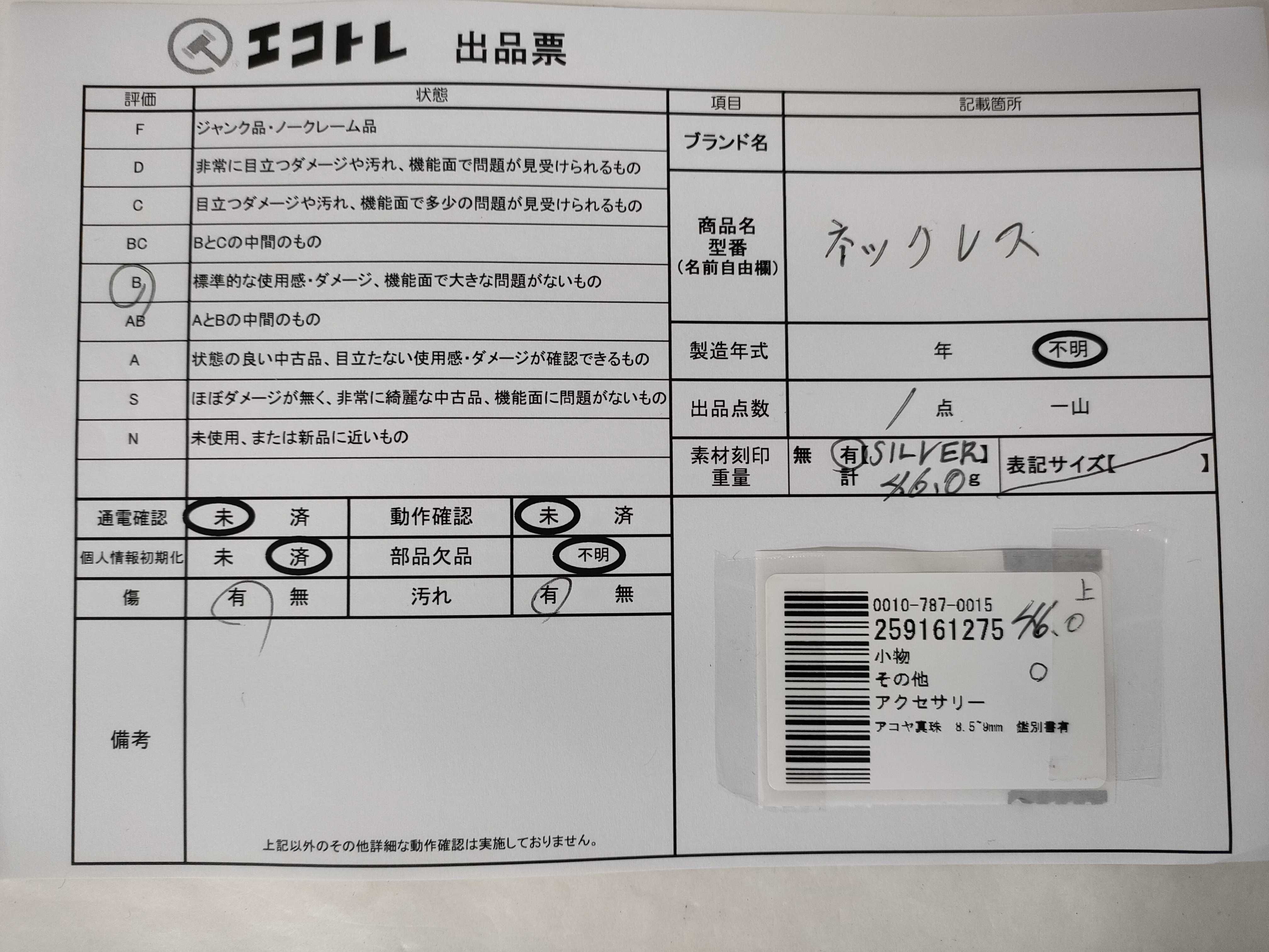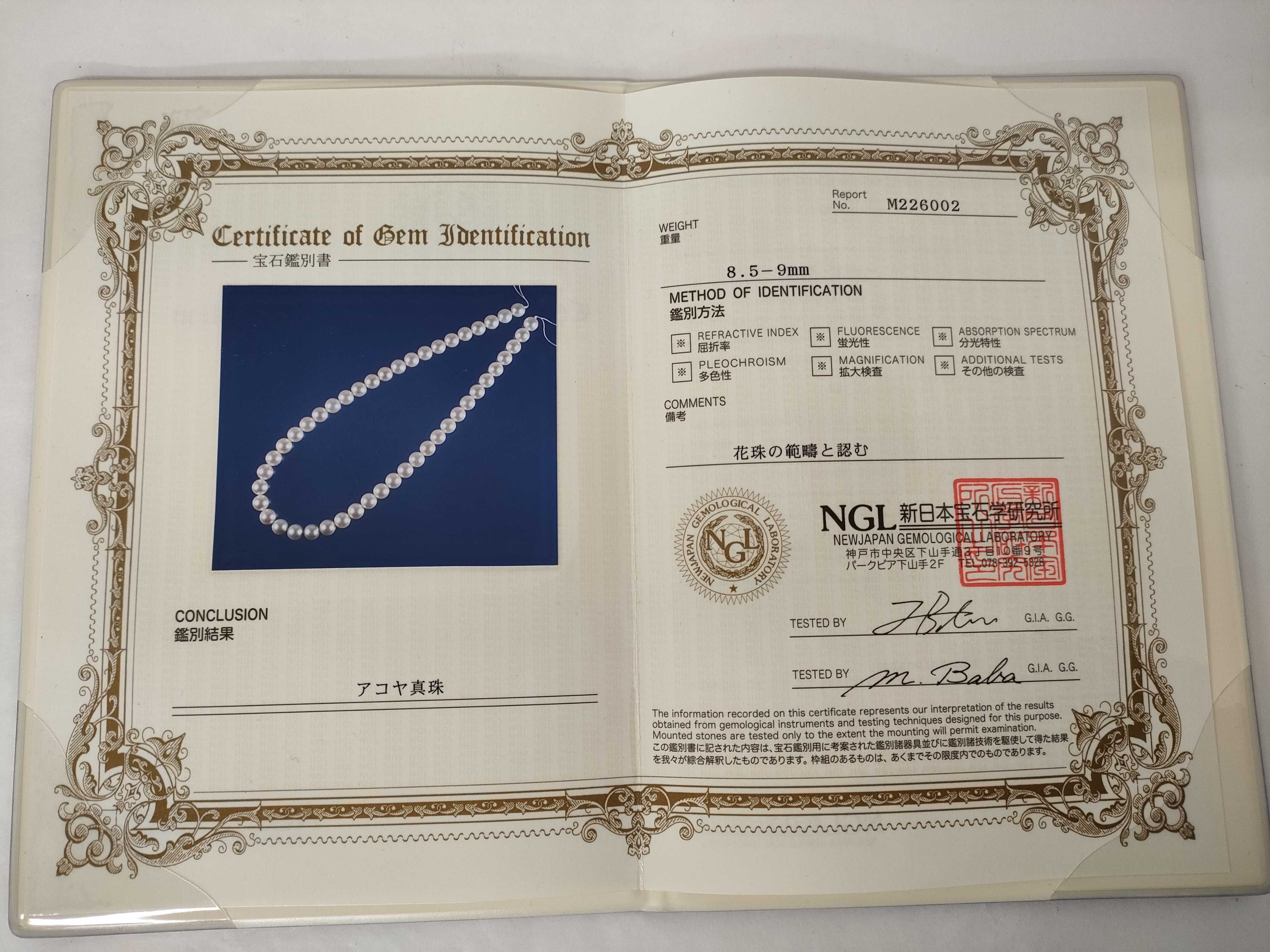 (C_0893)▼アコヤ真珠 8.5~9mm 鑑別書有 ネックレス