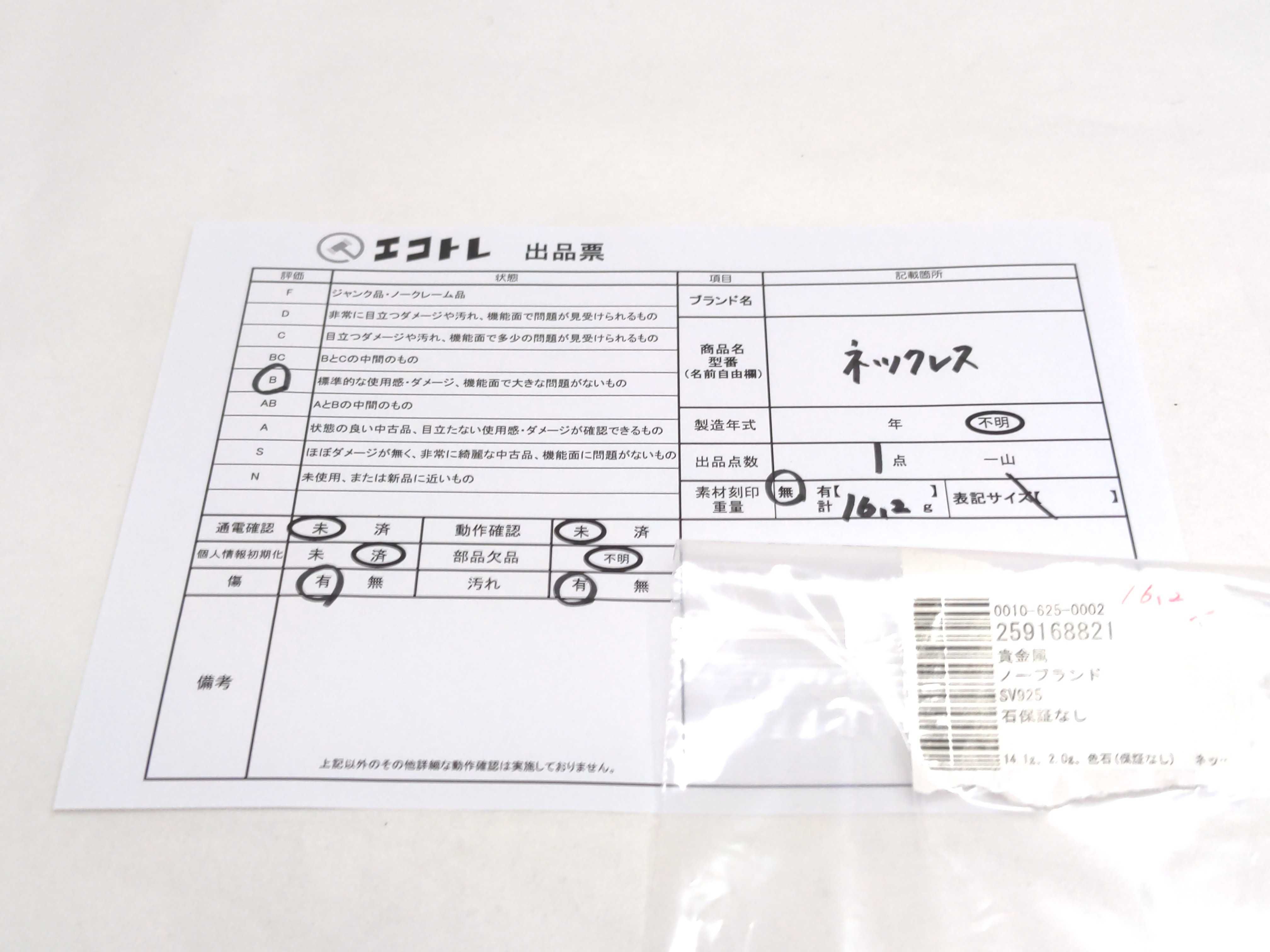 商品内容によって、JITBOXなどでの発送となる可能性がございます事ご理解下さい。年式などの商品情報詳細は写真にてご確認願います。※ご入札の際はご利用規約をよくお読みになってからのご参加お願いします。","タイプライン":"","カテゴリ":"アクセサリー","形状コード":"ネックレス","付属品コード":"","シリアル・シール・型番":""