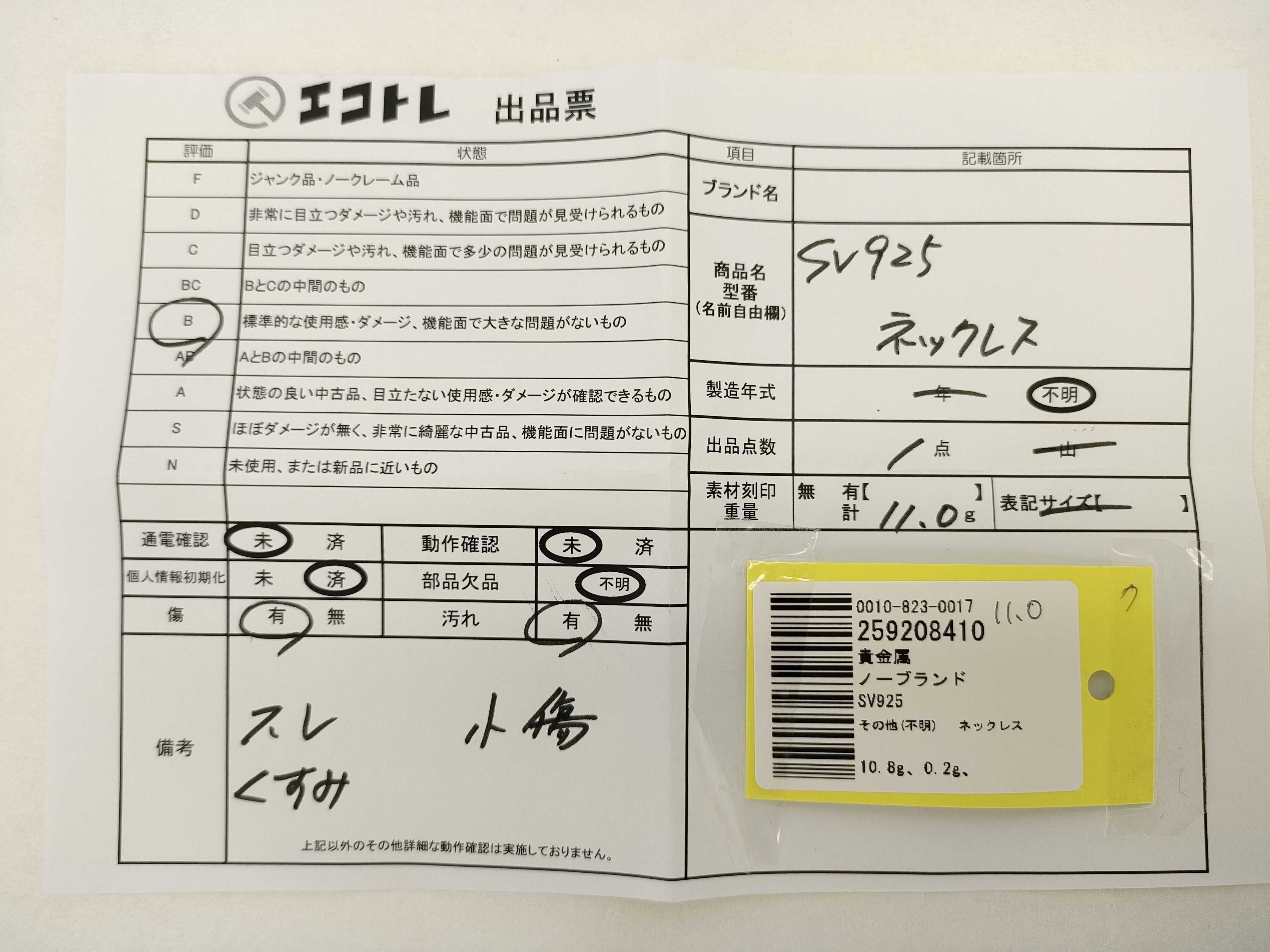 商品内容によって、JITBOXなどでの発送となる可能性がございます事ご理解下さい。年式などの商品情報詳細は写真にてご確認願います。※ご入札の際はご利用規約をよくお読みになってからのご参加お願いします。","タイプライン":"","カテゴリ":"アクセサリー","形状コード":"ネックレス","付属品コード":"","シリアル・シール・型番":""