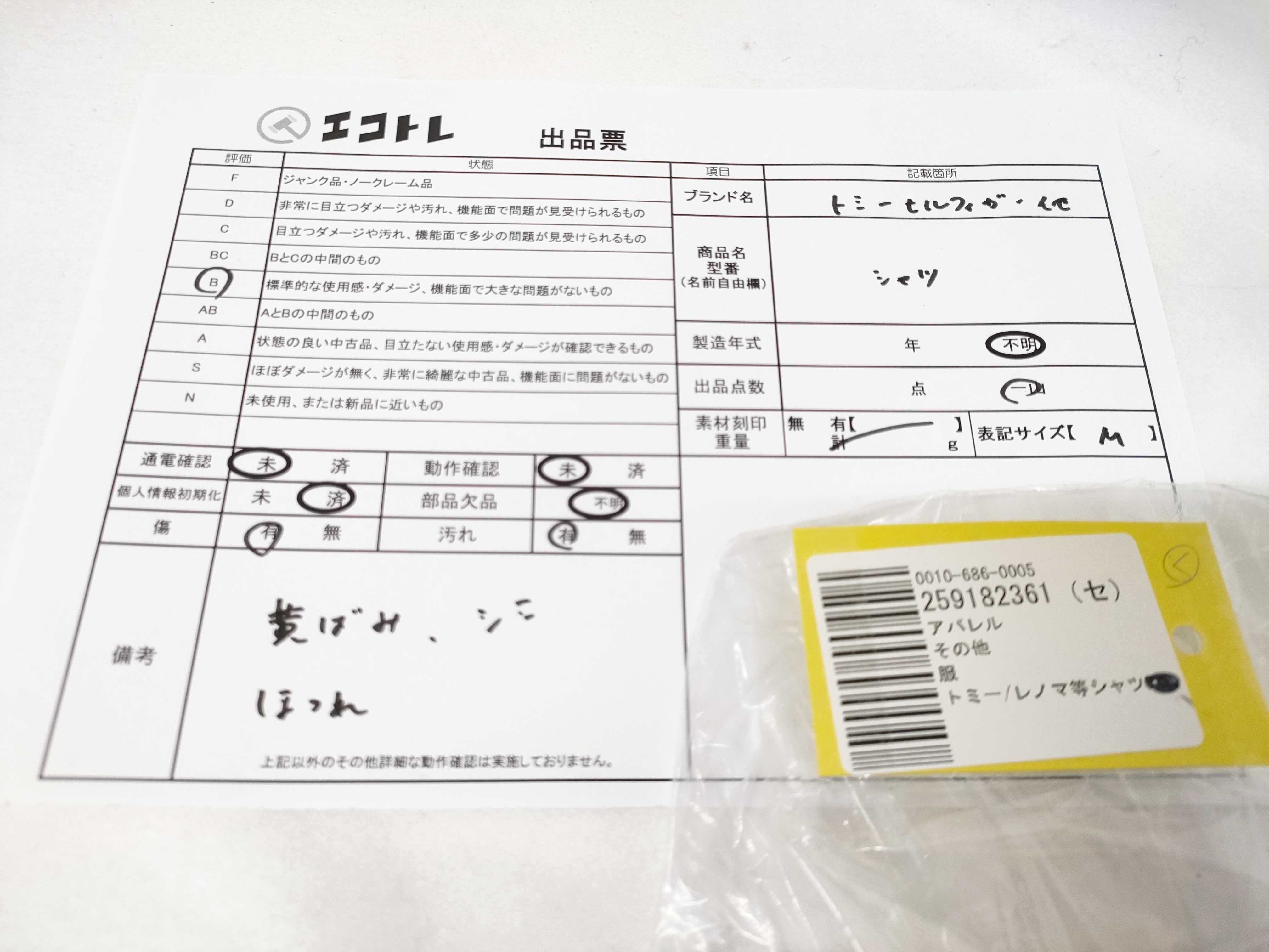 商品内容によって、JITBOXなどでの発送となる可能性がございます事ご理解下さい。年式などの商品情報詳細は写真にてご確認願います。※ご入札の際はご利用規約をよくお読みになってからのご参加お願いします。","タイプライン":"","カテゴリ":"アパレル","形状コード":"シャツ","付属品コード":"","シリアル・シール・型番":""