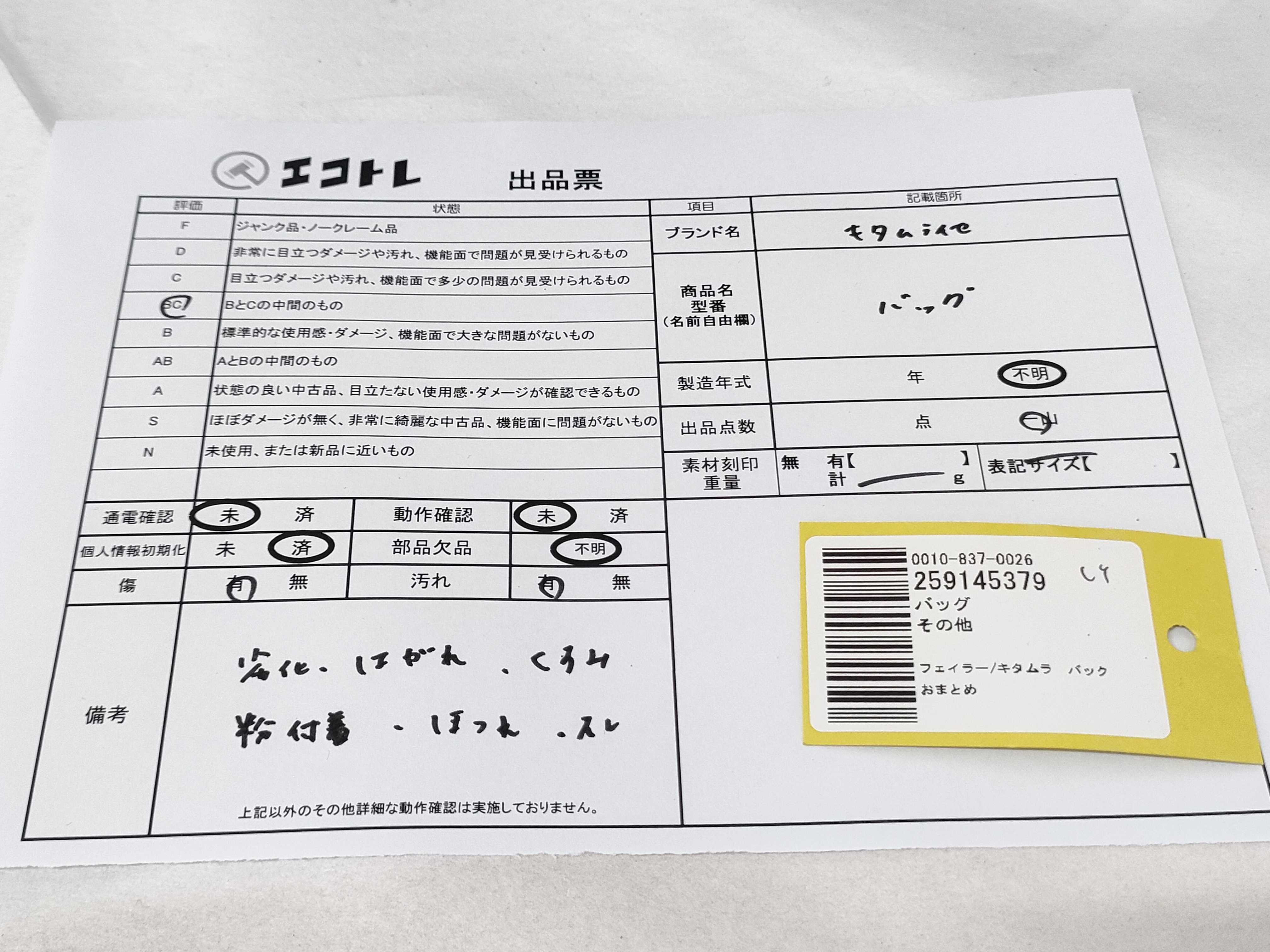 商品内容によって、JITBOXなどでの発送となる可能性がございます事ご理解下さい。年式などの商品情報詳細は写真にてご確認願います。※ご入札の際はご利用規約をよくお読みになってからのご参加お願いします。","タイプライン":"","カテゴリ":"バッグ","形状コード":"トートバッグ","付属品コード":"","シリアル・シール・型番":""