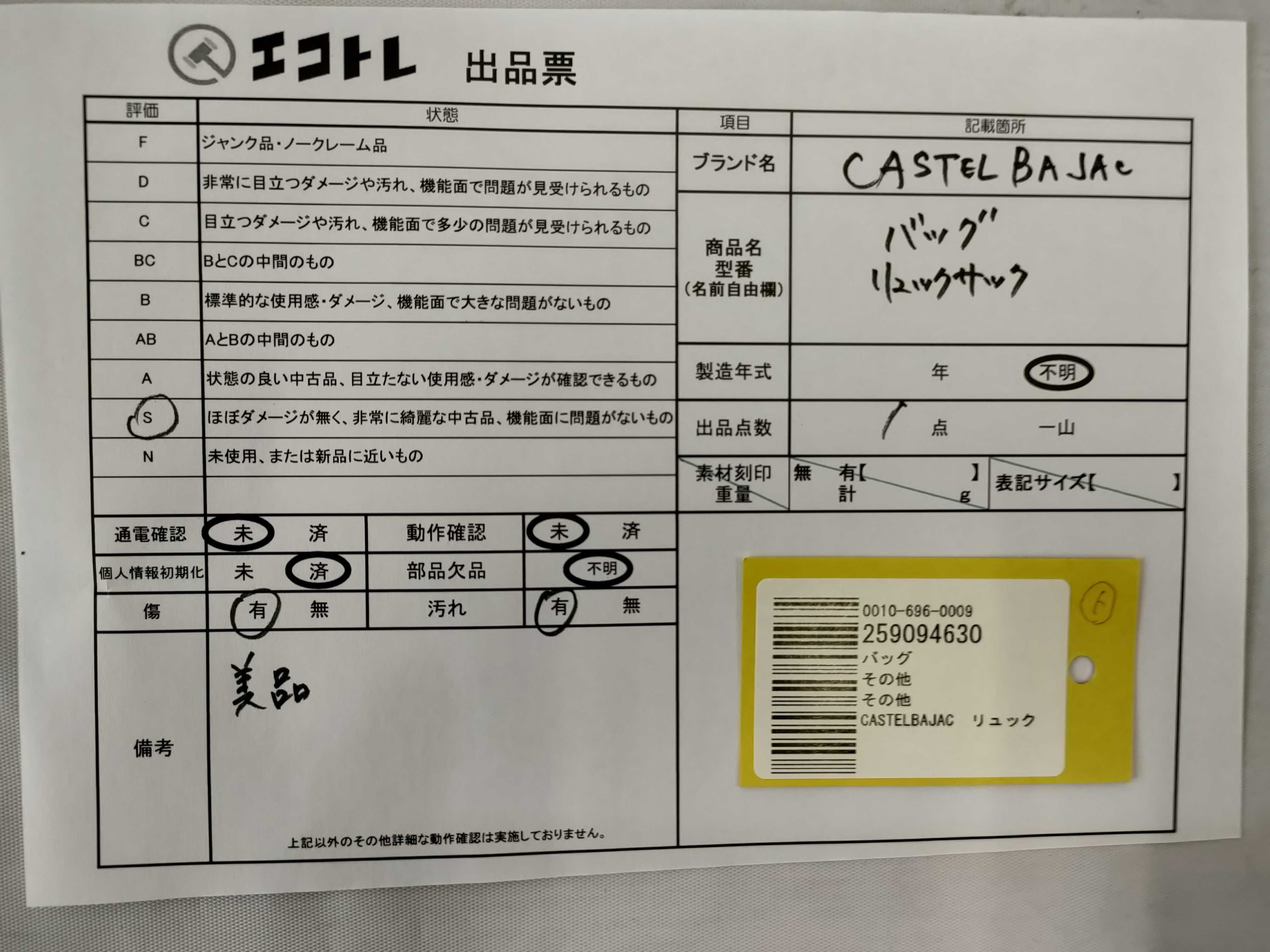 商品内容によって、JITBOXなどでの発送となる可能性がございます事ご理解下さい。年式などの商品情報詳細は写真にてご確認願います。※ご入札の際はご利用規約をよくお読みになってからのご参加お願いします。","タイプライン":"","カテゴリ":"バッグ","形状コード":"リュックサック","付属品コード":"","シリアル・シール・型番":""