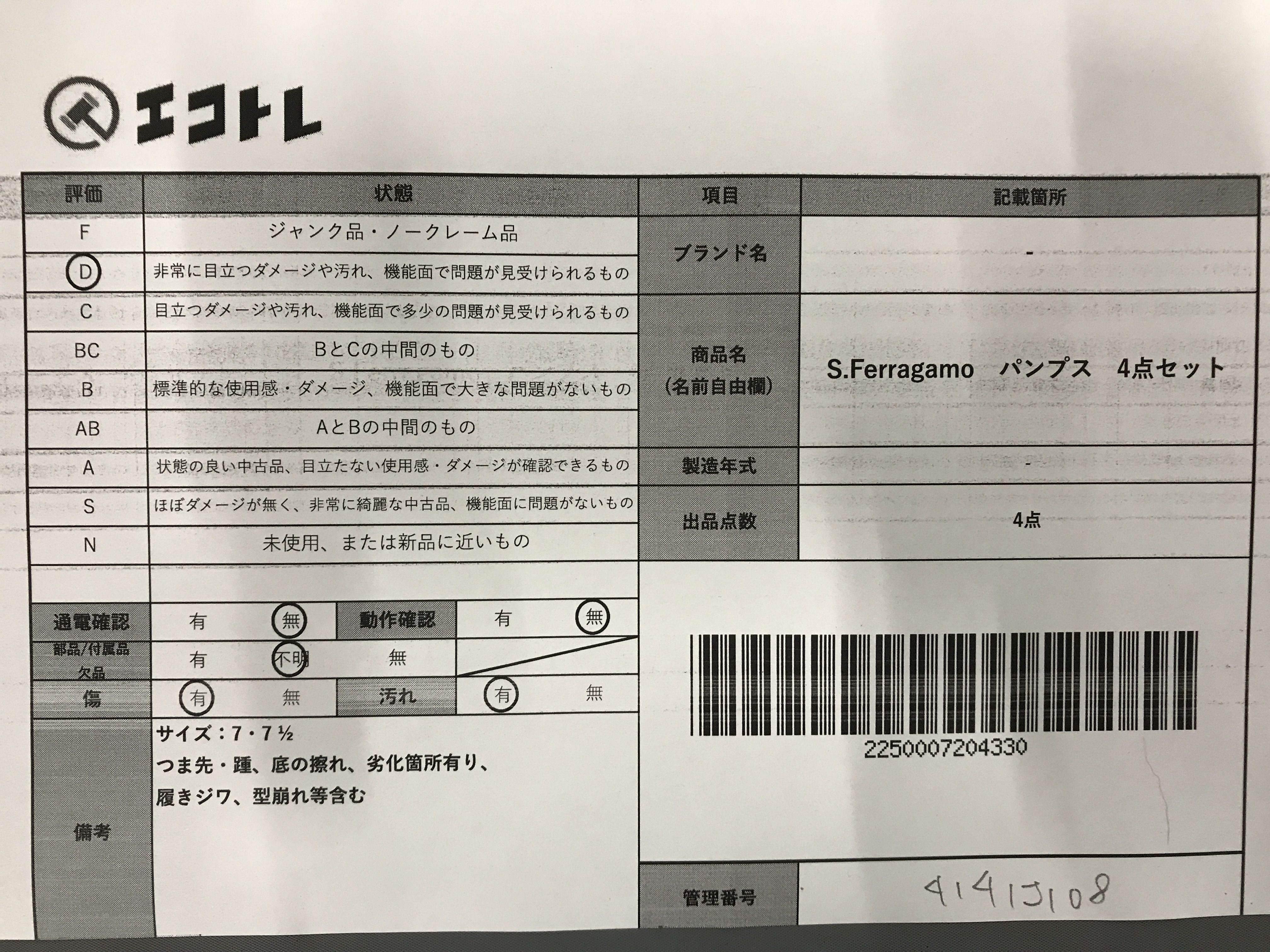 商品内容によって、JITBOXなどでの発送となる可能性がございます事ご理解下さい。年式などの商品情報詳細は写真にてご確認願います。※ご入札の際はご利用規約をよくお読みになってからのご参加お願いします。","タイプライン":"","カテゴリ":"靴","形状コード":"パンプス","付属品コード":"","シリアル・シール・型番":""