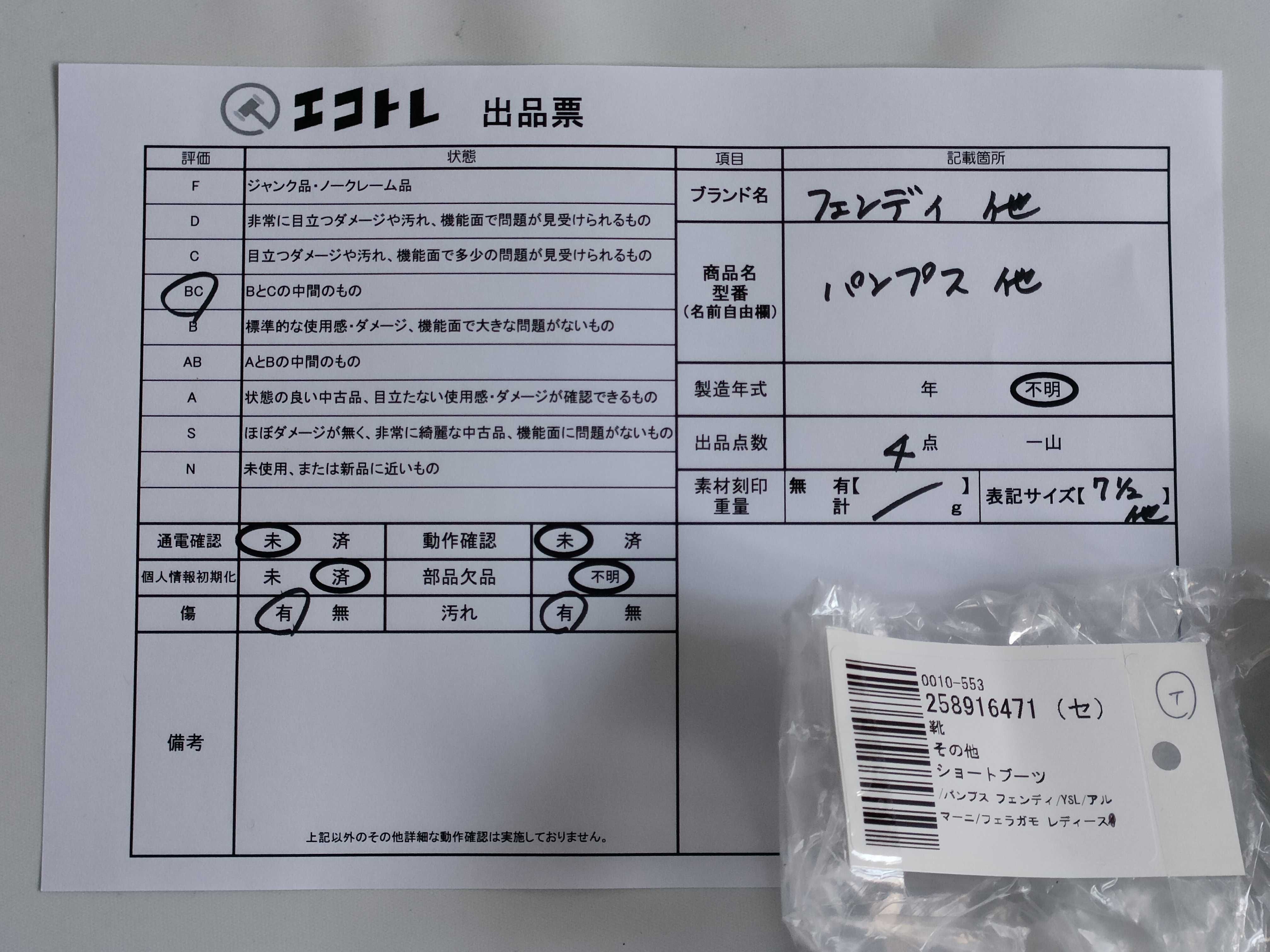 商品内容によって、JITBOXなどでの発送となる可能性がございます事ご理解下さい。年式などの商品情報詳細は写真にてご確認願います。※ご入札の際はご利用規約をよくお読みになってからのご参加お願いします。","タイプライン":"","カテゴリ":"靴","形状コード":"パンプス","付属品コード":"","シリアル・シール・型番":""