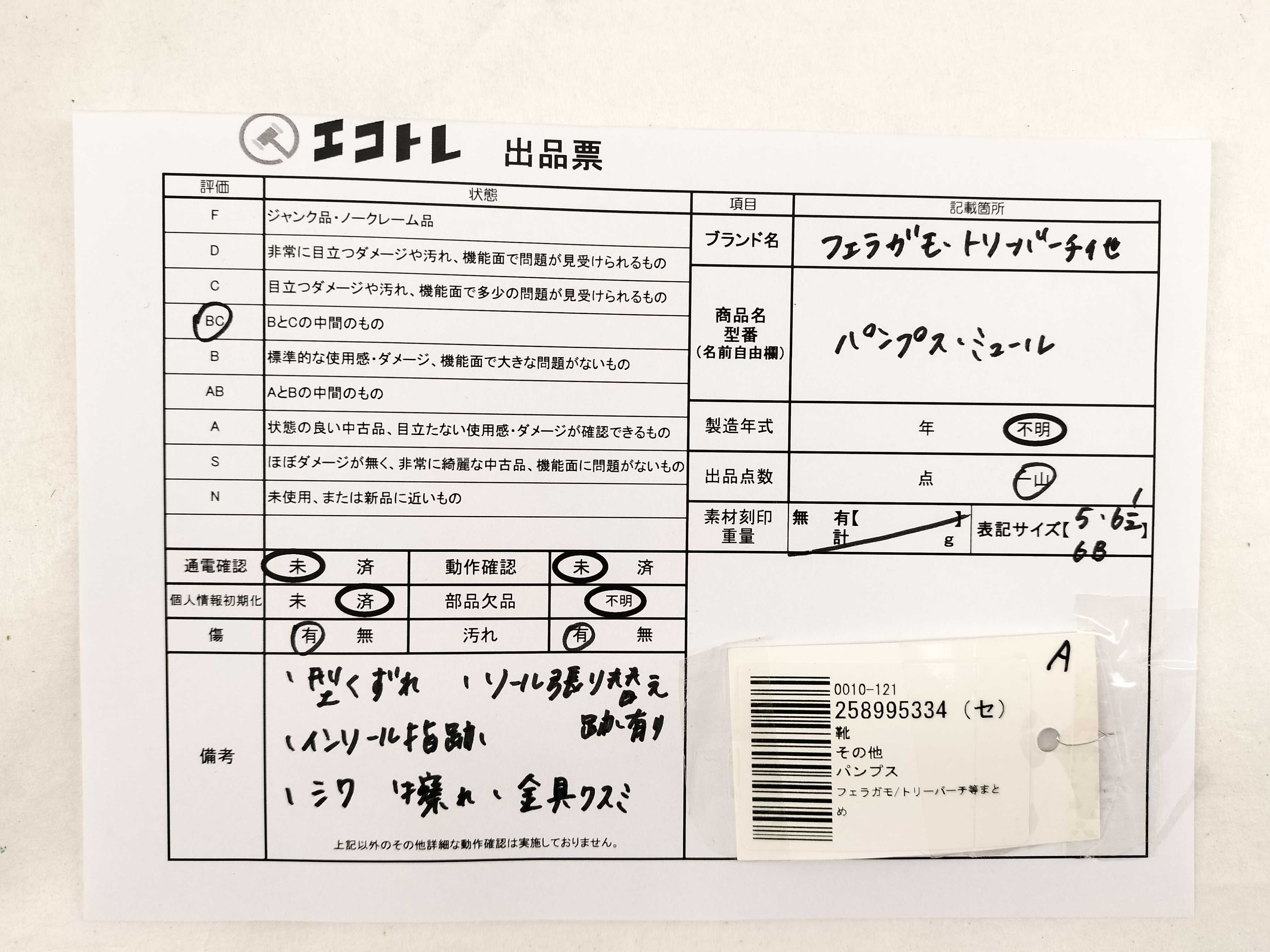 商品内容によって、JITBOXなどでの発送となる可能性がございます事ご理解下さい。年式などの商品情報詳細は写真にてご確認願います。※ご入札の際はご利用規約をよくお読みになってからのご参加お願いします。","タイプライン":"","カテゴリ":"靴","形状コード":"パンプス","付属品コード":"","シリアル・シール・型番":""