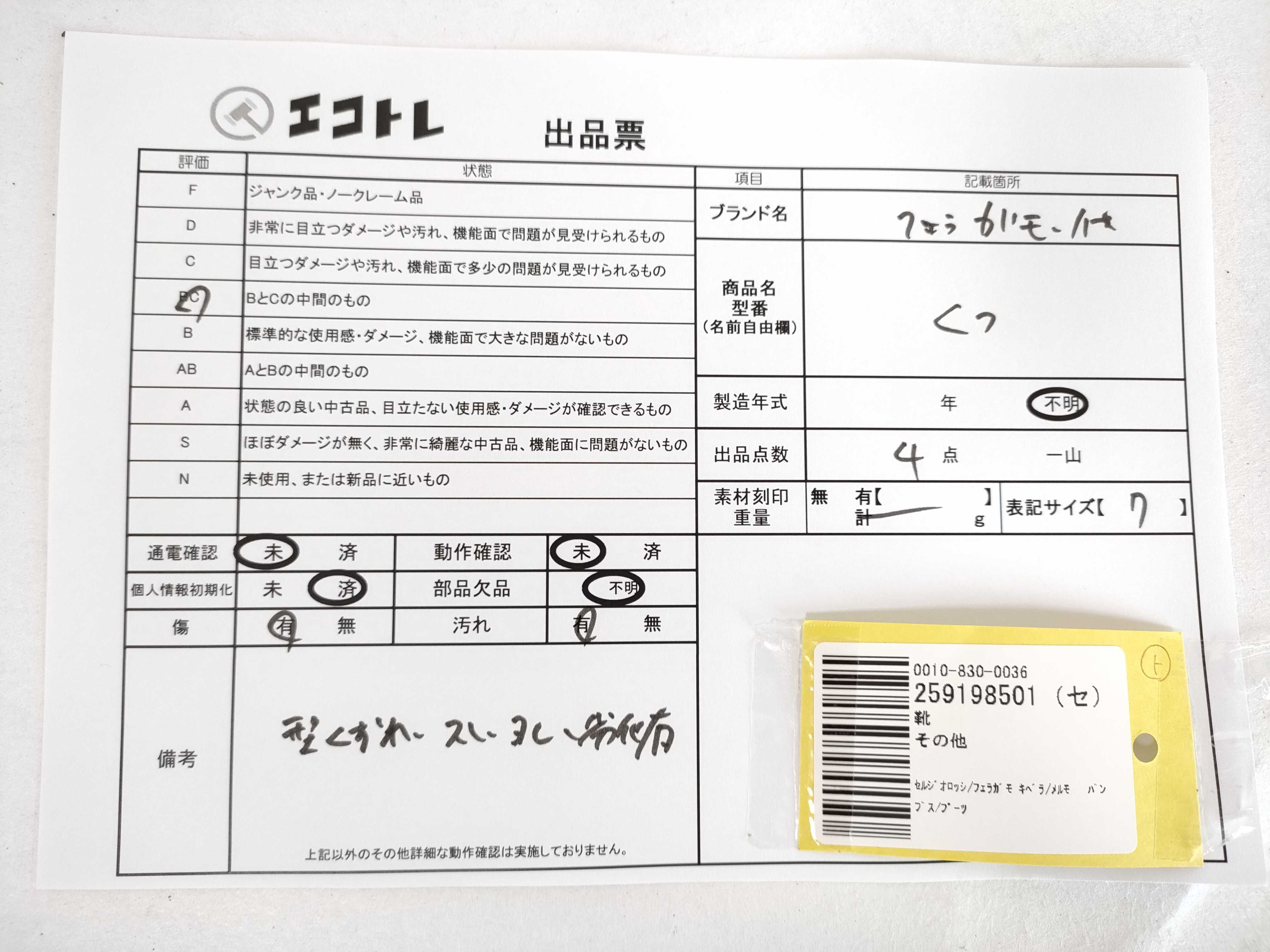 商品内容によって、JITBOXなどでの発送となる可能性がございます事ご理解下さい。年式などの商品情報詳細は写真にてご確認願います。※ご入札の際はご利用規約をよくお読みになってからのご参加お願いします。","タイプライン":"","カテゴリ":"靴","形状コード":"パンプス","付属品コード":"","シリアル・シール・型番":""
