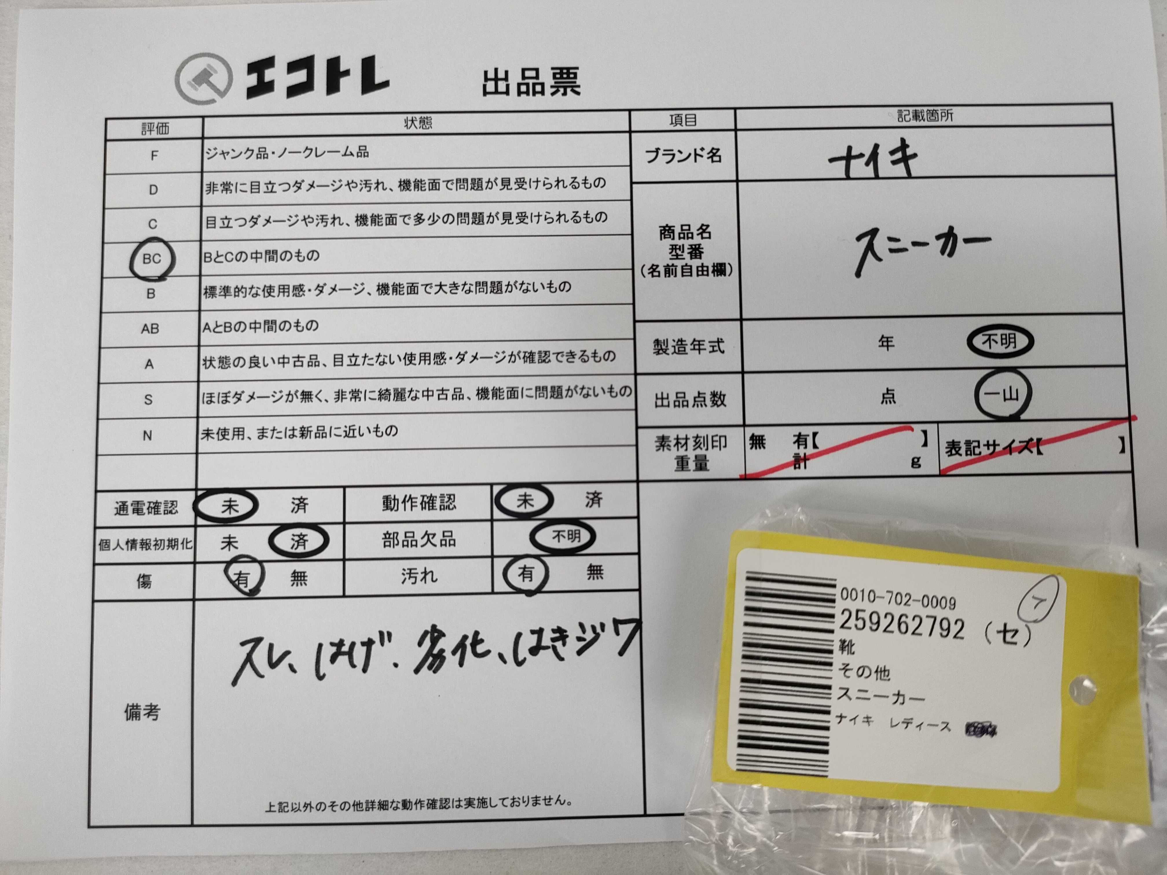 商品内容によって、JITBOXなどでの発送となる可能性がございます事ご理解下さい。年式などの商品情報詳細は写真にてご確認願います。※ご入札の際はご利用規約をよくお読みになってからのご参加お願いします。","タイプライン":"","カテゴリ":"靴","形状コード":"スニーカー","付属品コード":"","シリアル・シール・型番":""
