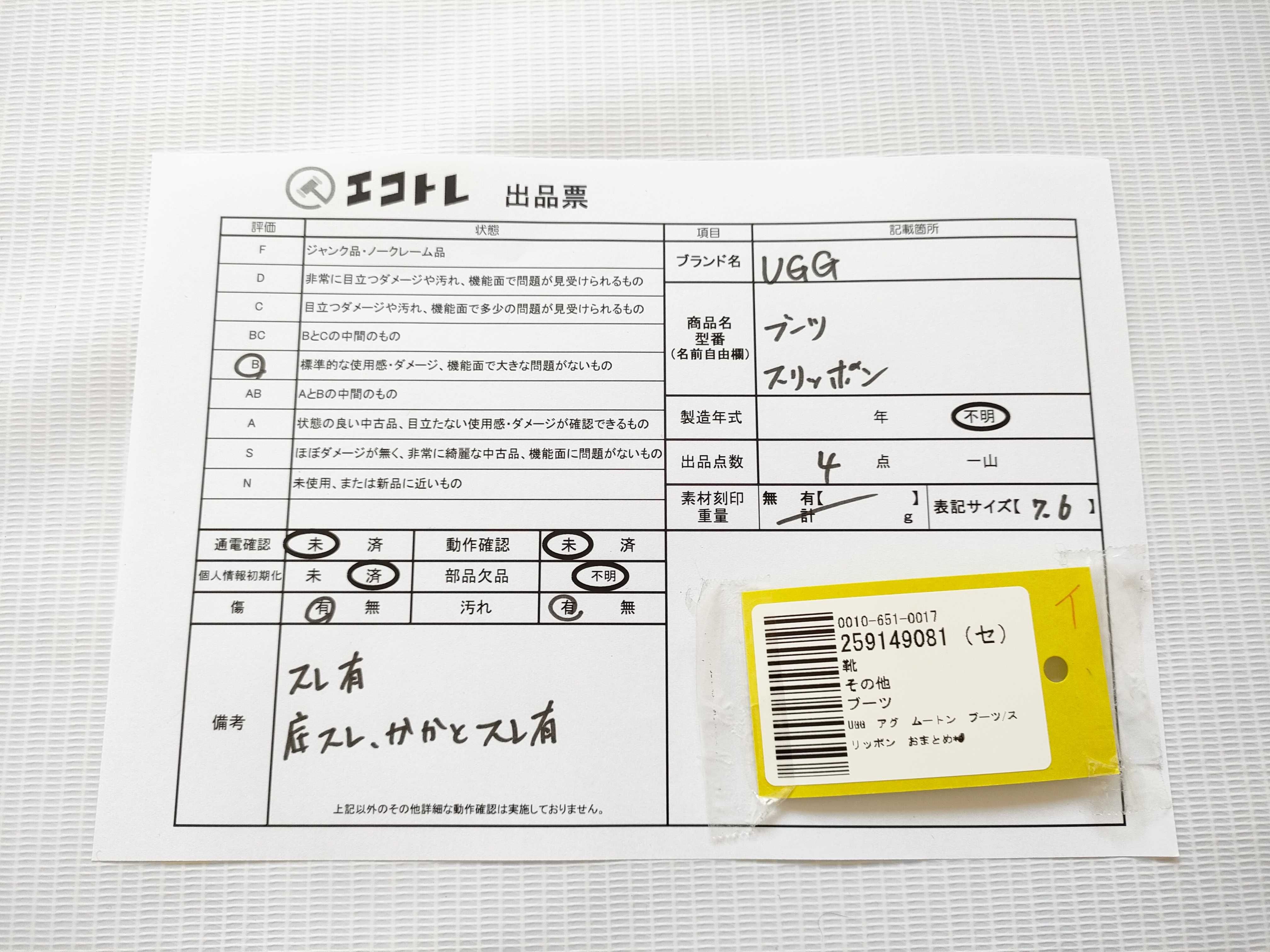 商品内容によって、JITBOXなどでの発送となる可能性がございます事ご理解下さい。年式などの商品情報詳細は写真にてご確認願います。※ご入札の際はご利用規約をよくお読みになってからのご参加お願いします。","タイプライン":"","カテゴリ":"靴","形状コード":"その他靴","付属品コード":"","シリアル・シール・型番":""