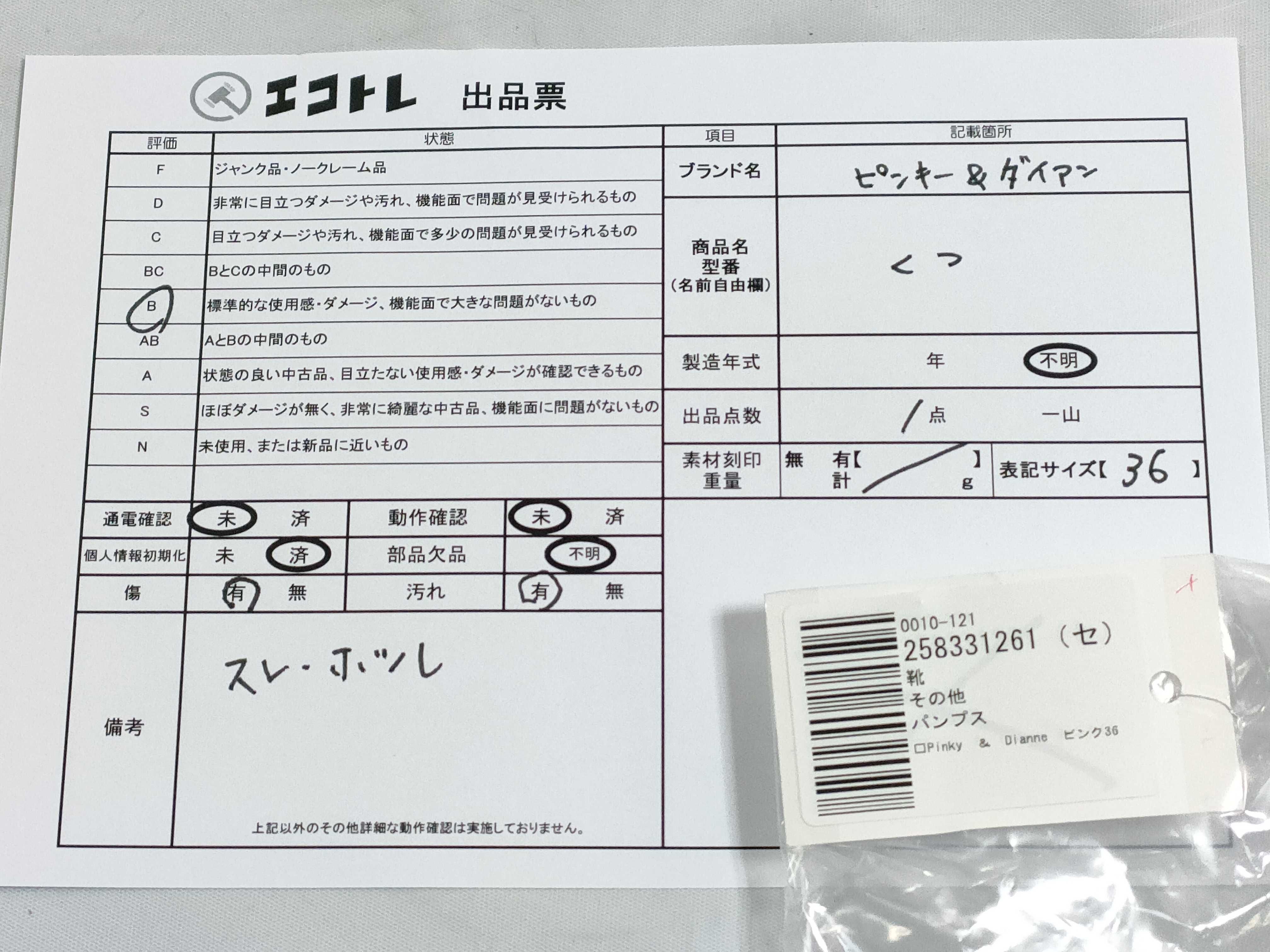 商品内容によって、JITBOXなどでの発送となる可能性がございます事ご理解下さい。年式などの商品情報詳細は写真にてご確認願います。※ご入札の際はご利用規約をよくお読みになってからのご参加お願いします。","タイプライン":"","カテゴリ":"靴","形状コード":"サンダル","付属品コード":"","シリアル・シール・型番":"36"