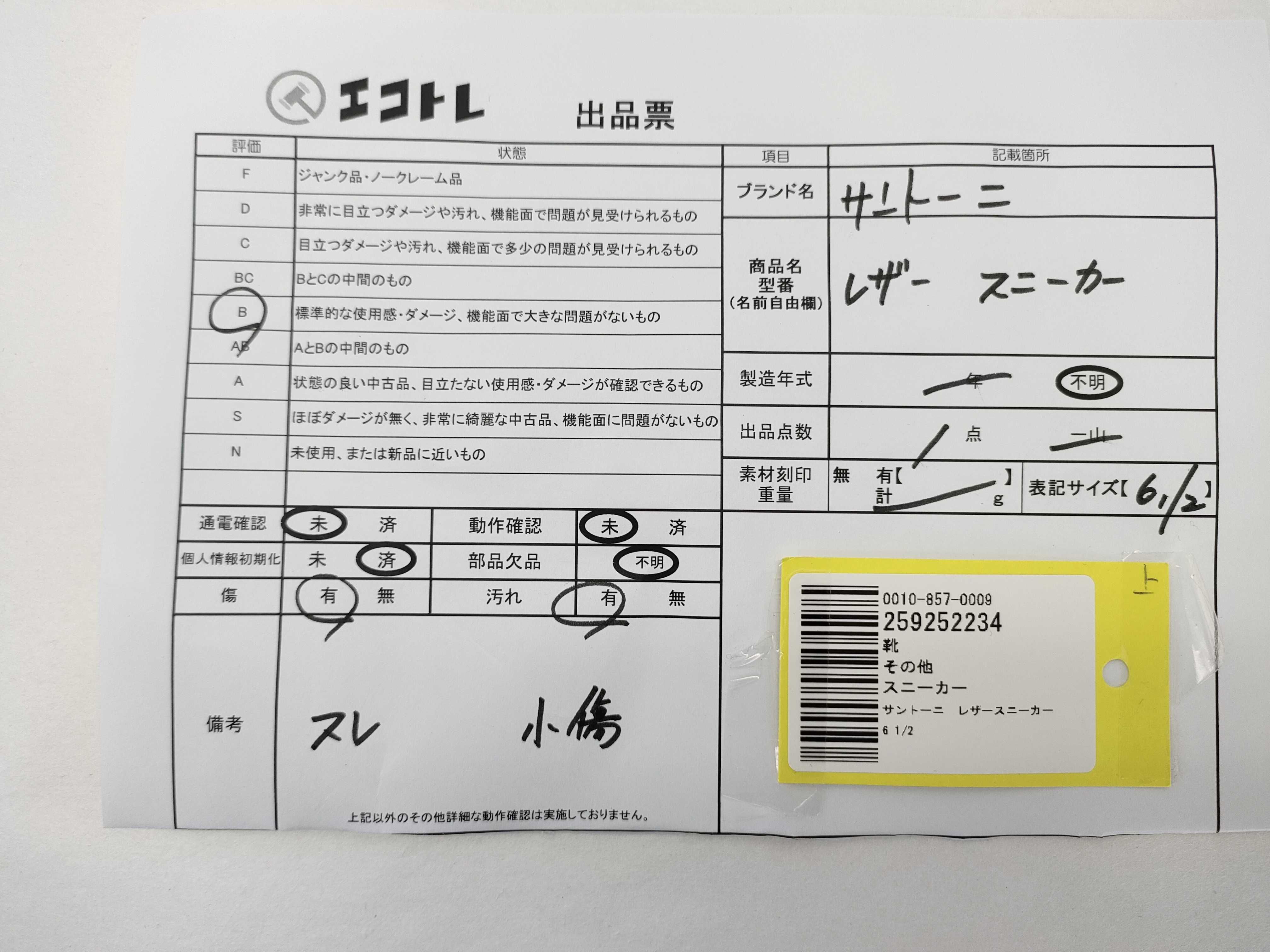 (B_1320)▼サントーニ レザースニーカー