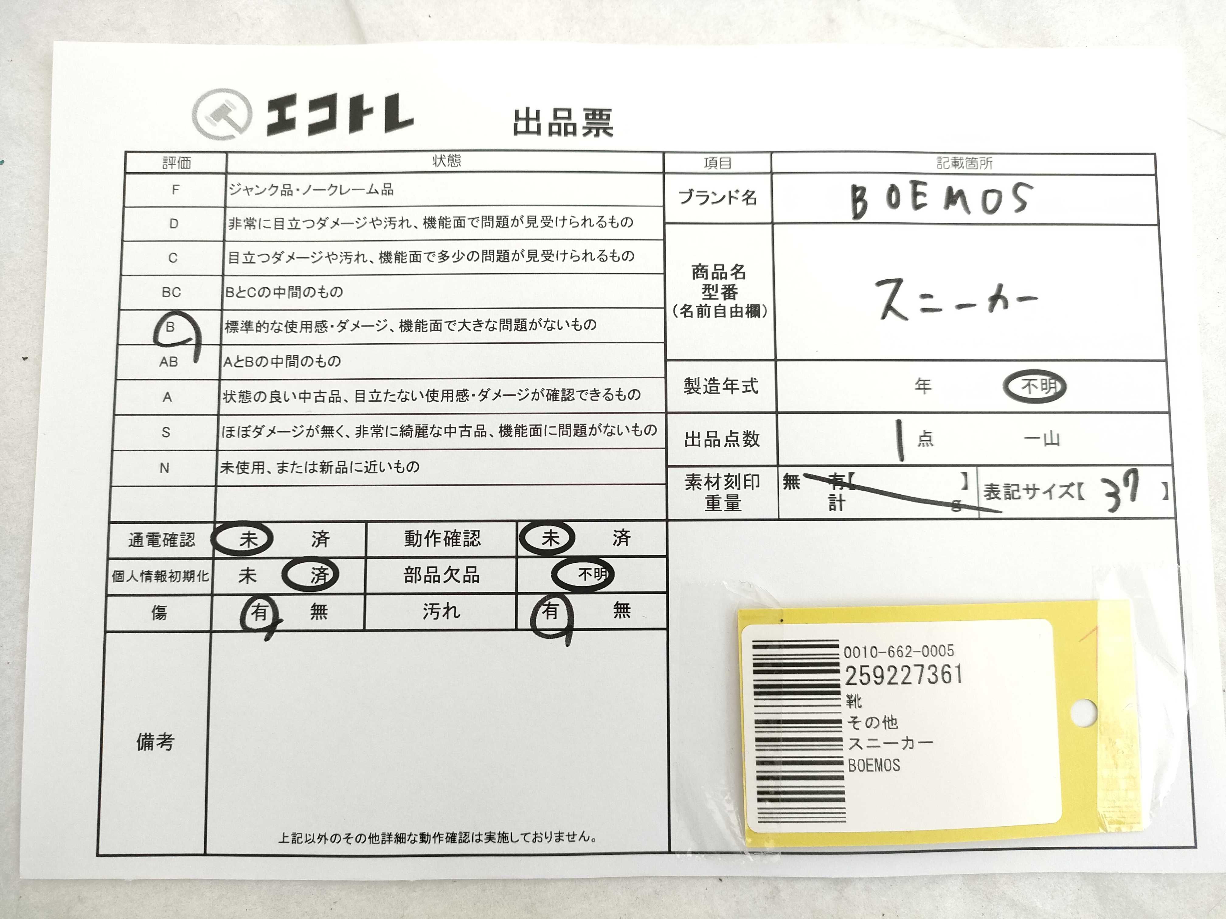 (B_1342)▼BOEMOS スニーカー