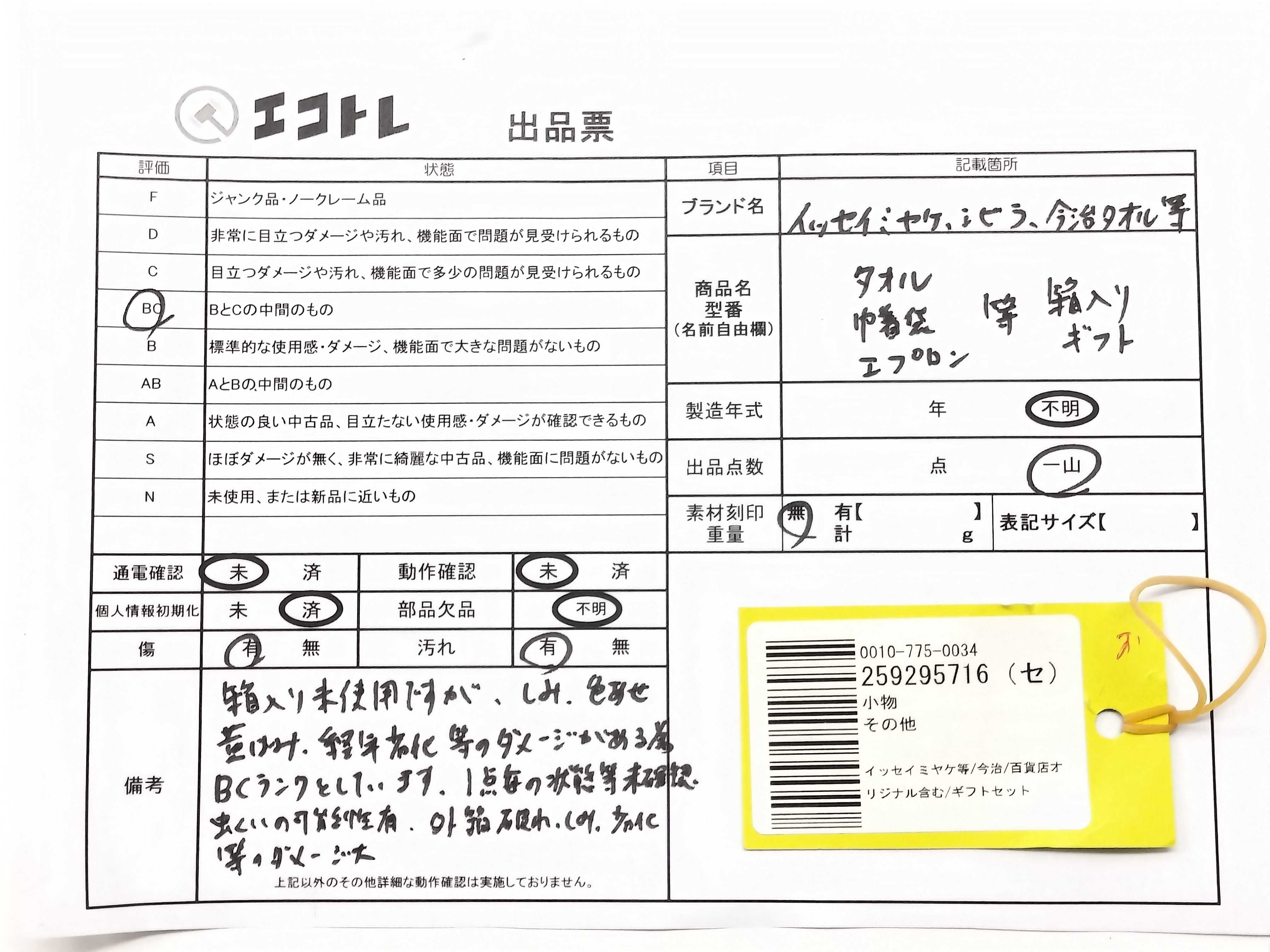 (J_0445)▼イッセイミヤケ等/今治/百貨店オリジナル含む/ギフトセット その他小物