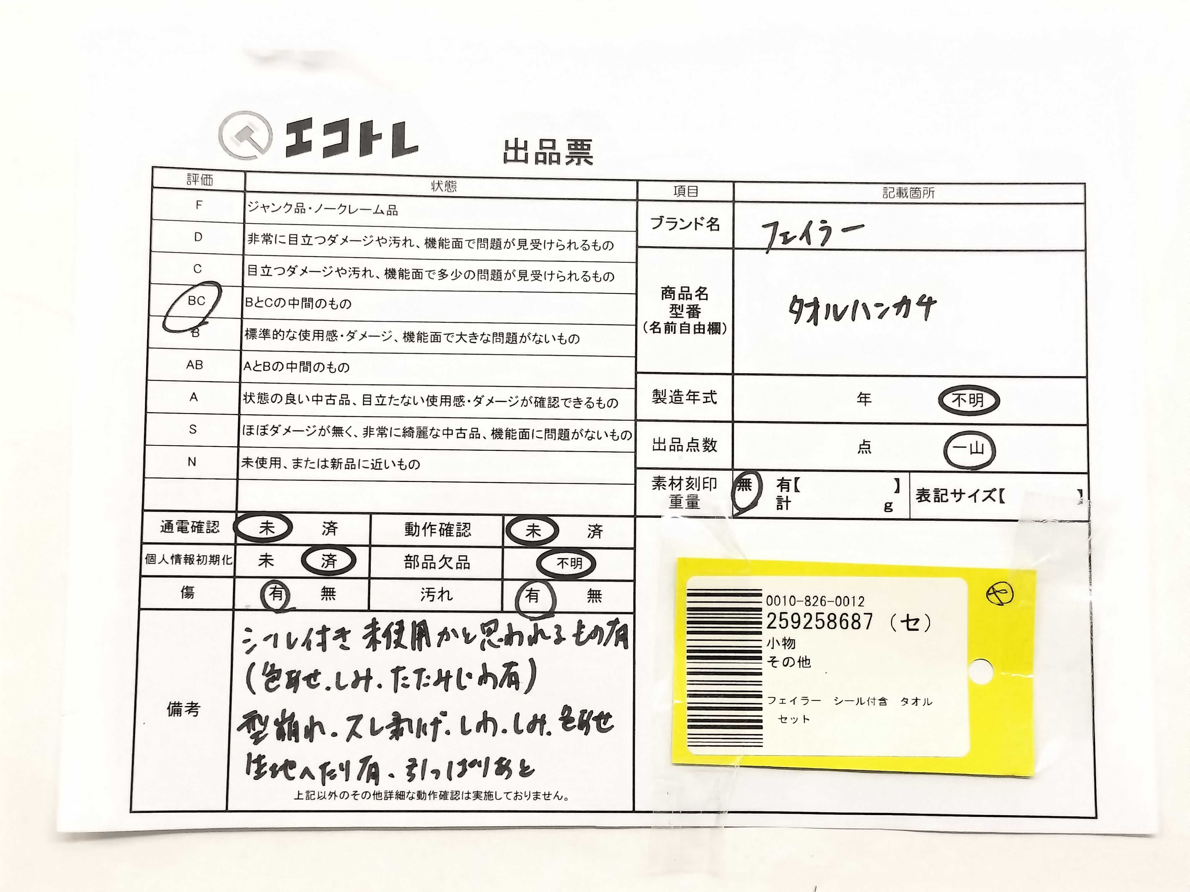 (J_0441)▼フェイラー シール付含 タオル セット その他小物