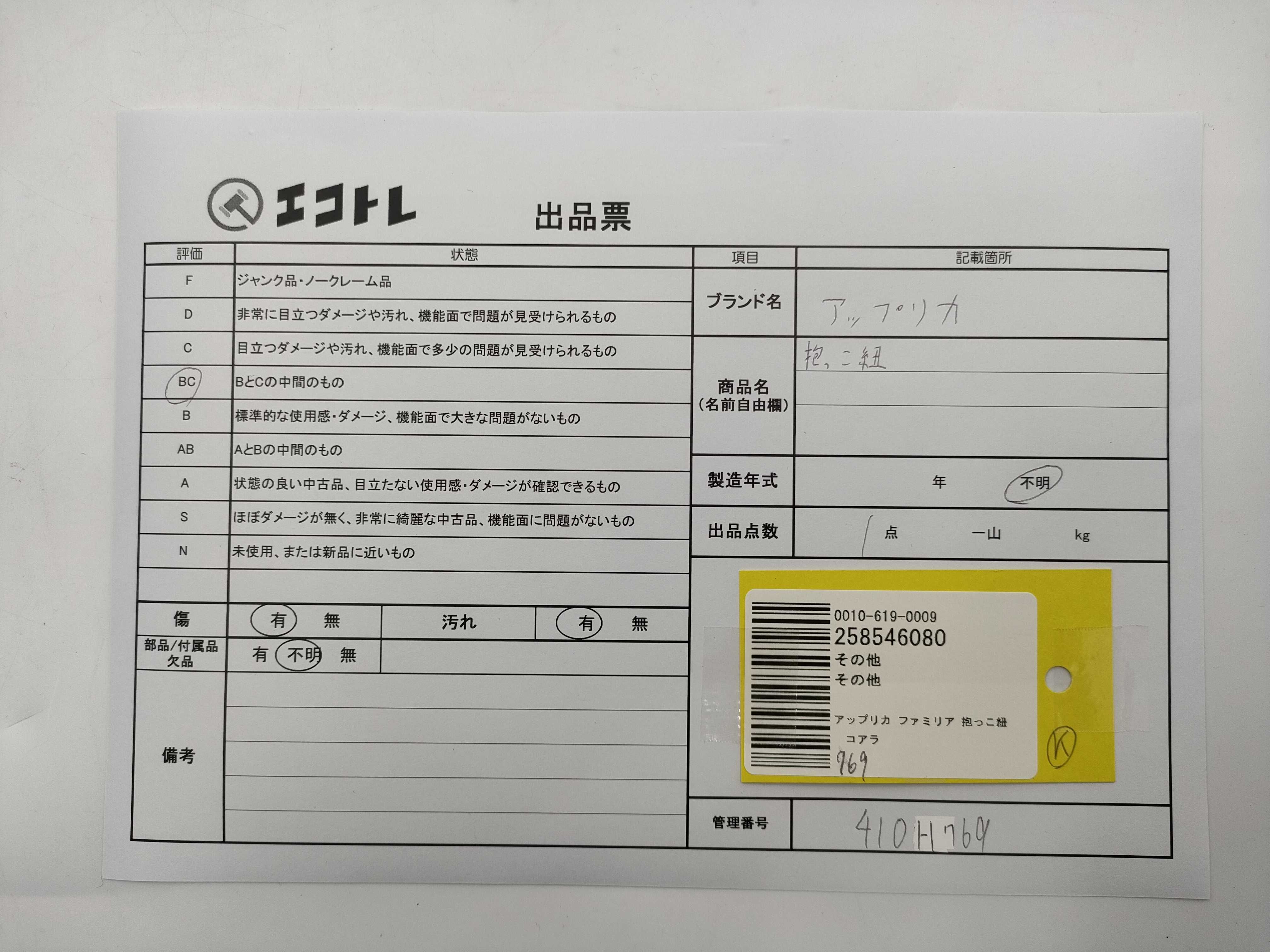 商品内容によって、JITBOXなどでの発送となる可能性がございます事ご理解下さい。年式などの商品情報詳細は写真にてご確認願います。※ご入札の際はご利用規約をよくお読みになってからのご参加お願いします。","タイプライン":"","カテゴリ":"小物","形状コード":"その他小物","付属品コード":"","シリアル・シール・型番":""