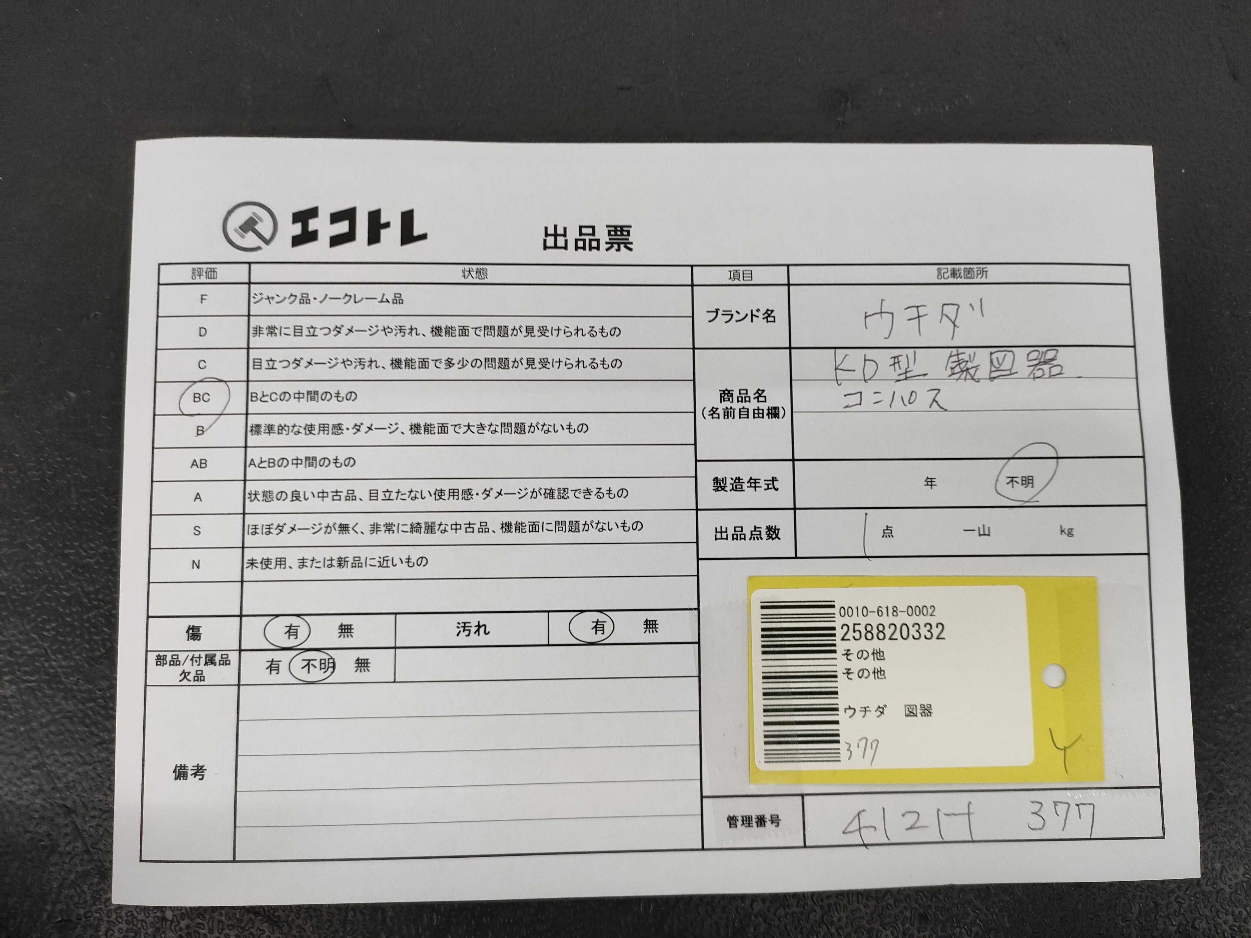 商品内容によって、JITBOXなどでの発送となる可能性がございます事ご理解下さい。年式などの商品情報詳細は写真にてご確認願います。※ご入札の際はご利用規約をよくお読みになってからのご参加お願いします。","タイプライン":"","カテゴリ":"小物","形状コード":"その他小物","付属品コード":"","シリアル・シール・型番":""