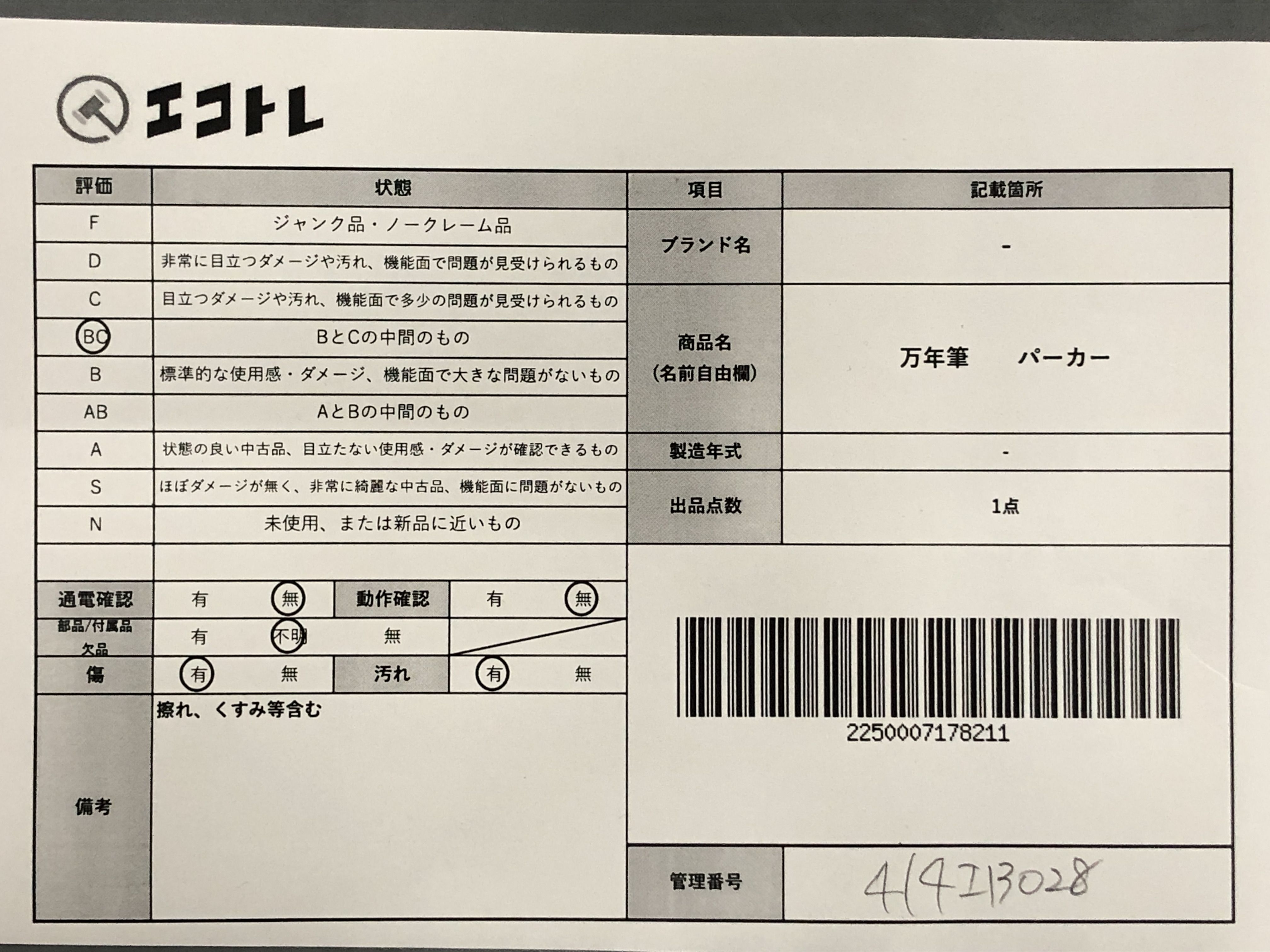 商品内容によって、JITBOXなどでの発送となる可能性がございます事ご理解下さい。年式などの商品情報詳細は写真にてご確認願います。※ご入札の際はご利用規約をよくお読みになってからのご参加お願いします。","タイプライン":"","カテゴリ":"小物","形状コード":"ペン・万年筆","付属品コード":"","シリアル・シール・型番":""