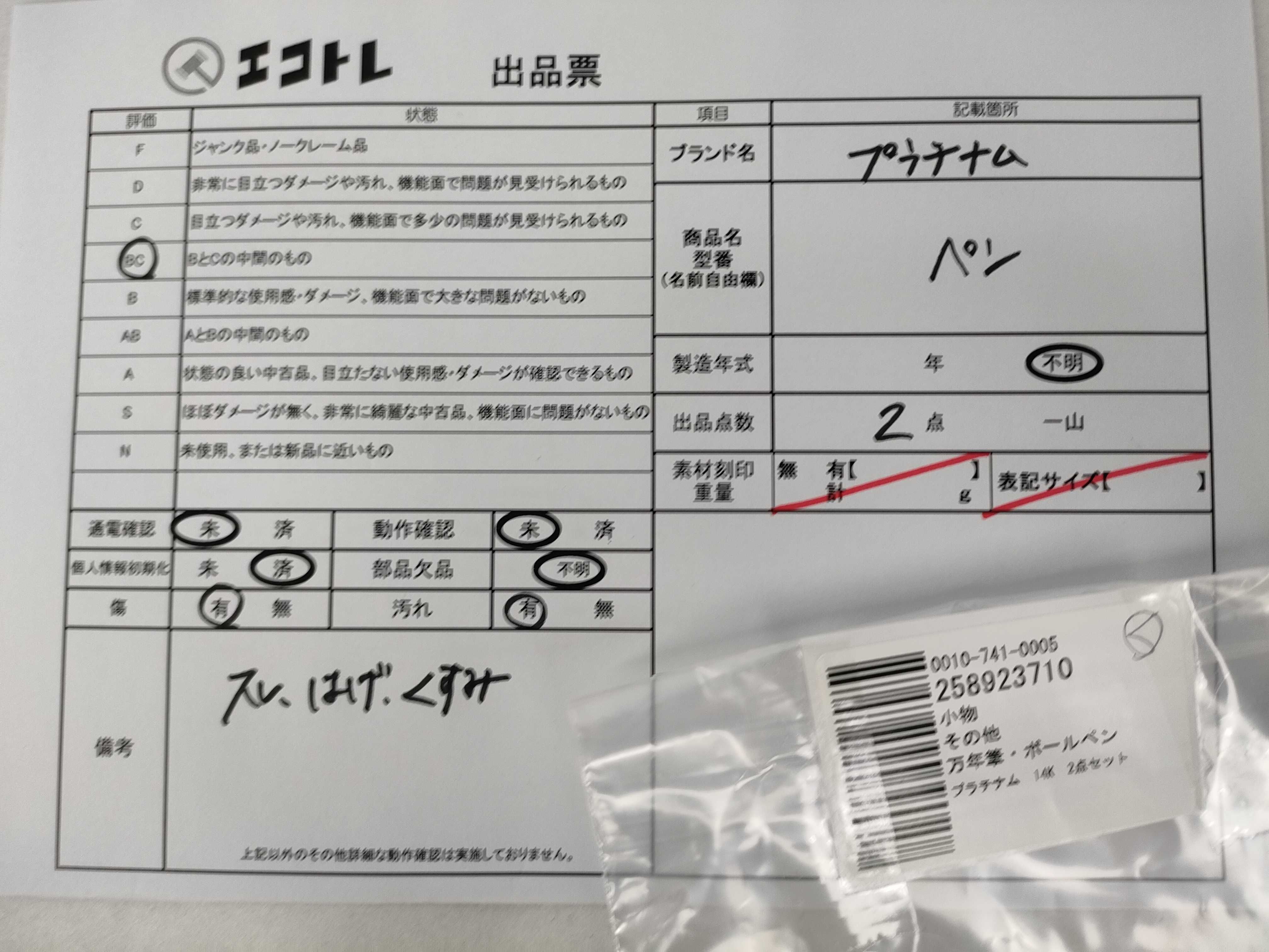 商品内容によって、JITBOXなどでの発送となる可能性がございます事ご理解下さい。年式などの商品情報詳細は写真にてご確認願います。※ご入札の際はご利用規約をよくお読みになってからのご参加お願いします。","タイプライン":"","カテゴリ":"小物","形状コード":"ペン・万年筆","付属品コード":"","シリアル・シール・型番":""