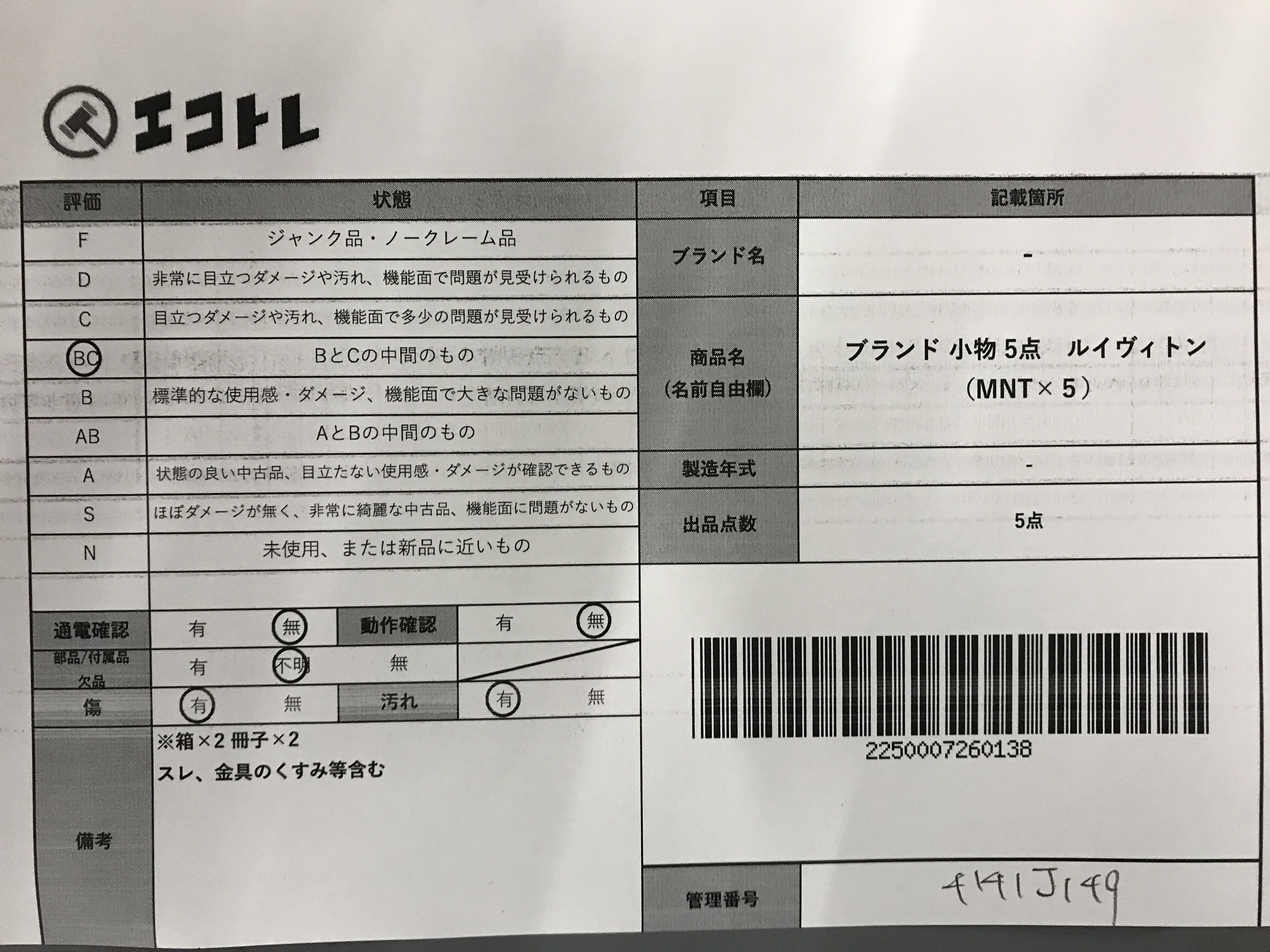 商品内容によって、JITBOXなどでの発送となる可能性がございます事ご理解下さい。年式などの商品情報詳細は写真にてご確認願います。※ご入札の際はご利用規約をよくお読みになってからのご参加お願いします。","タイプライン":"","カテゴリ":"小物","形状コード":"財布","付属品コード":"","シリアル・シール・型番":""