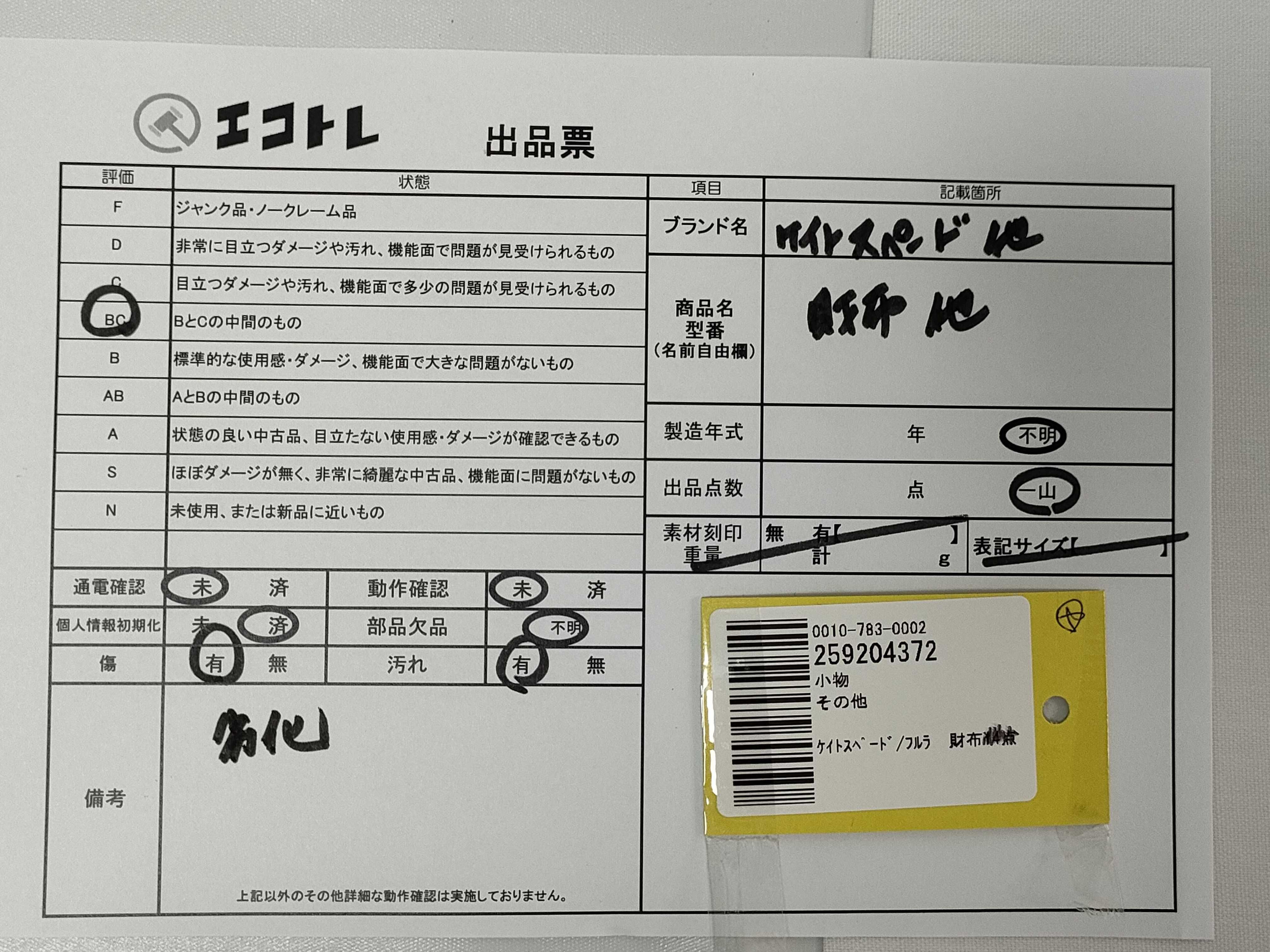 商品内容によって、JITBOXなどでの発送となる可能性がございます事ご理解下さい。年式などの商品情報詳細は写真にてご確認願います。※ご入札の際はご利用規約をよくお読みになってからのご参加お願いします。","タイプライン":"","カテゴリ":"小物","形状コード":"財布","付属品コード":"","シリアル・シール・型番":""