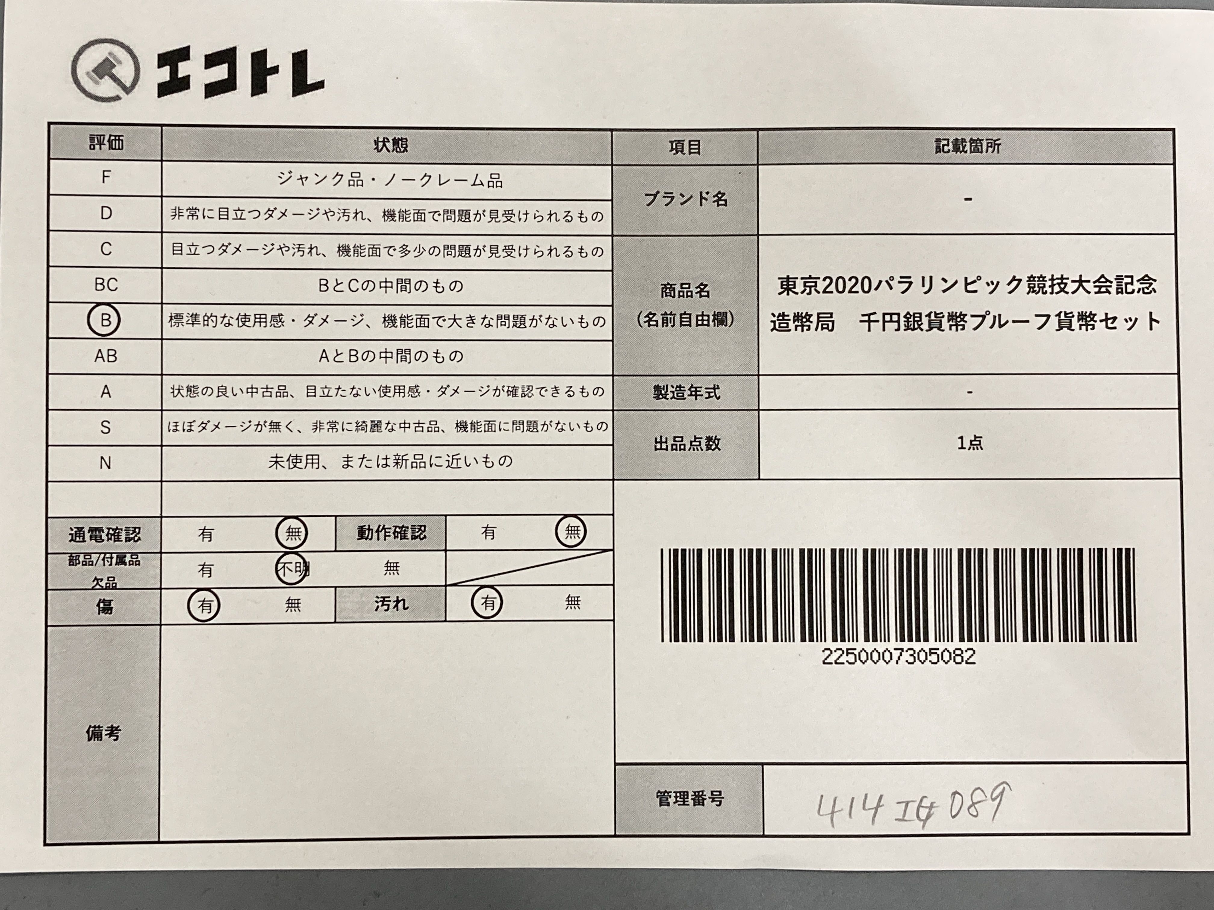 (J_0548)▼東京2020パラリンピック競技大会記念 造幣局 千円銀貨幣プルーフ貨幣セット その他小物