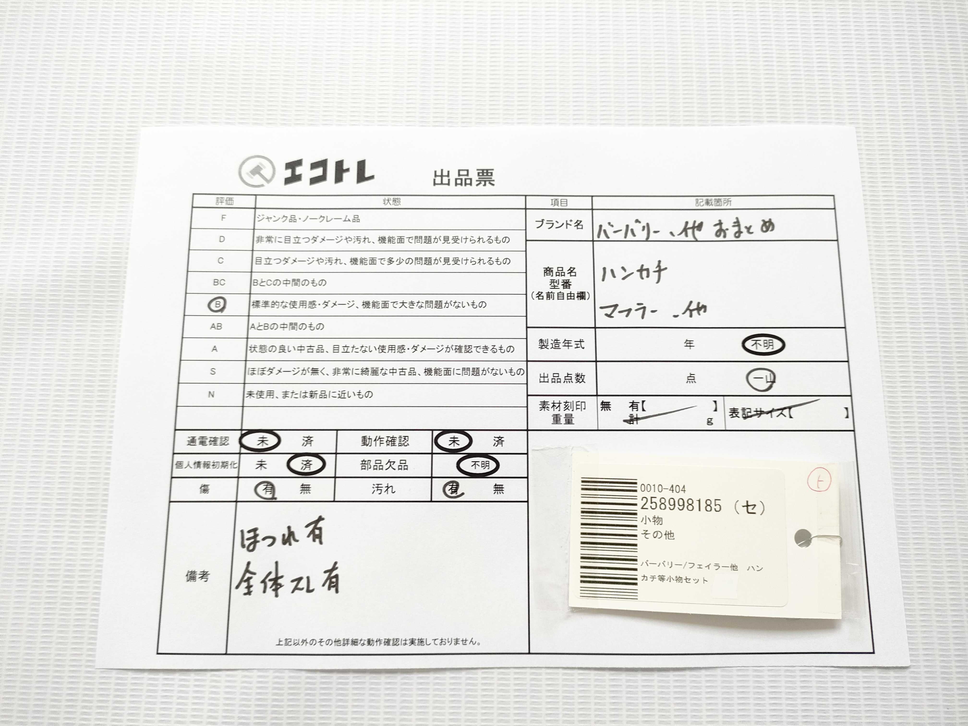 商品内容によって、JITBOXなどでの発送となる可能性がございます事ご理解下さい。年式などの商品情報詳細は写真にてご確認願います。※ご入札の際はご利用規約をよくお読みになってからのご参加お願いします。","タイプライン":"","カテゴリ":"小物","形状コード":"その他小物","付属品コード":"","シリアル・シール・型番":""