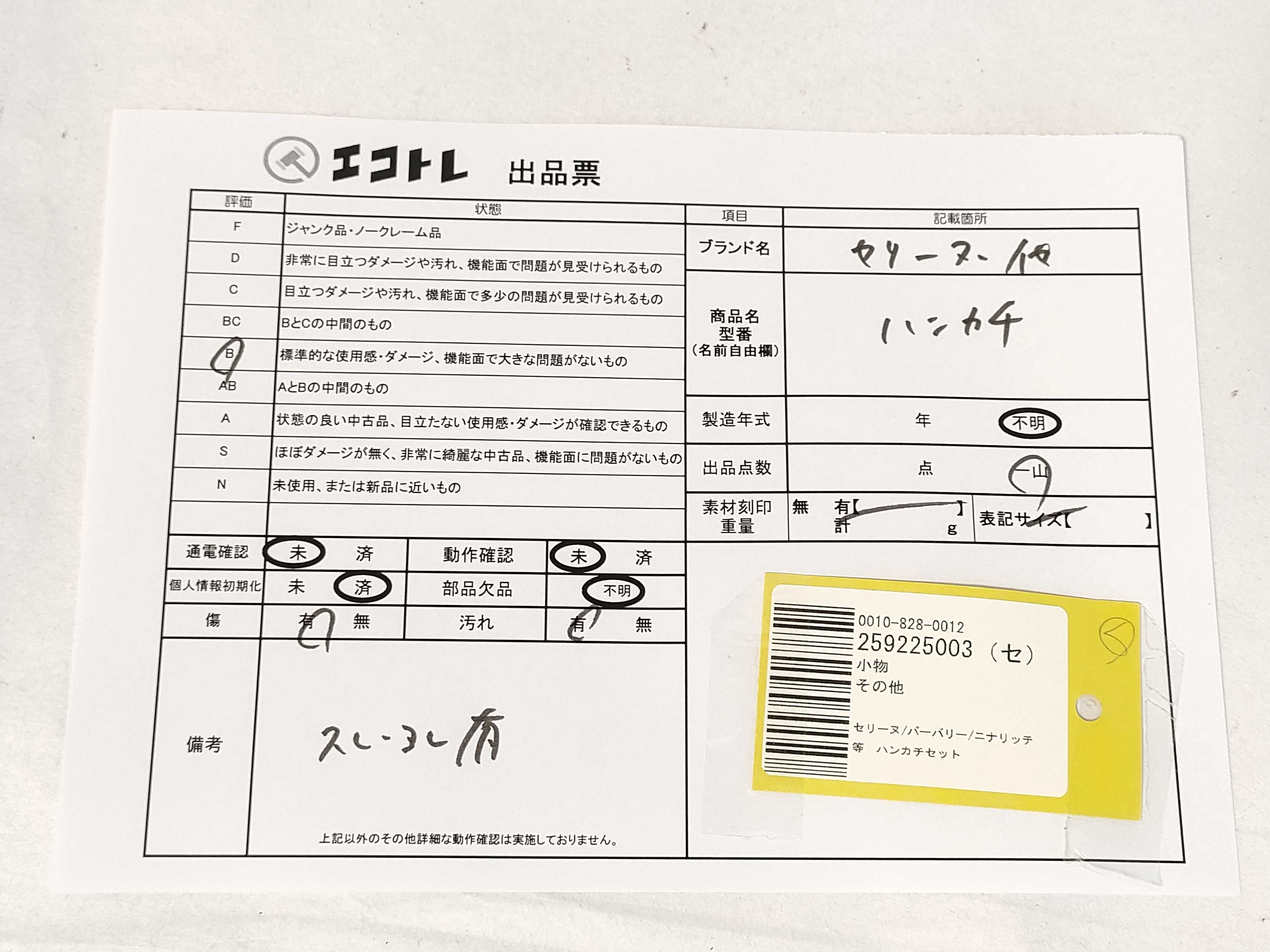 商品内容によって、JITBOXなどでの発送となる可能性がございます事ご理解下さい。年式などの商品情報詳細は写真にてご確認願います。※ご入札の際はご利用規約をよくお読みになってからのご参加お願いします。","タイプライン":"","カテゴリ":"小物","形状コード":"その他小物","付属品コード":"","シリアル・シール・型番":""