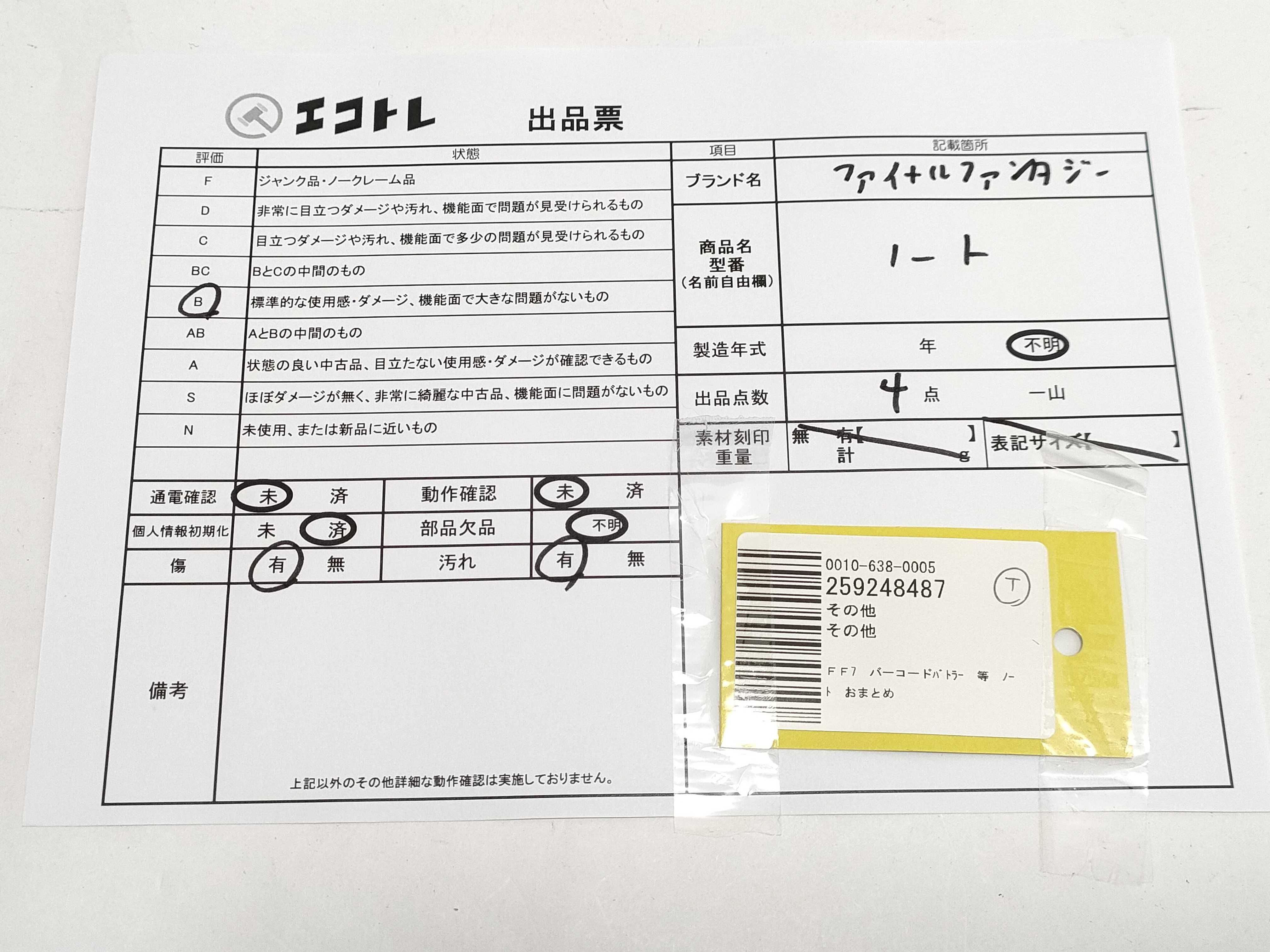 (J_0626)▼FF7 バーコードバトラー 等 ノート おまとめ その他小物