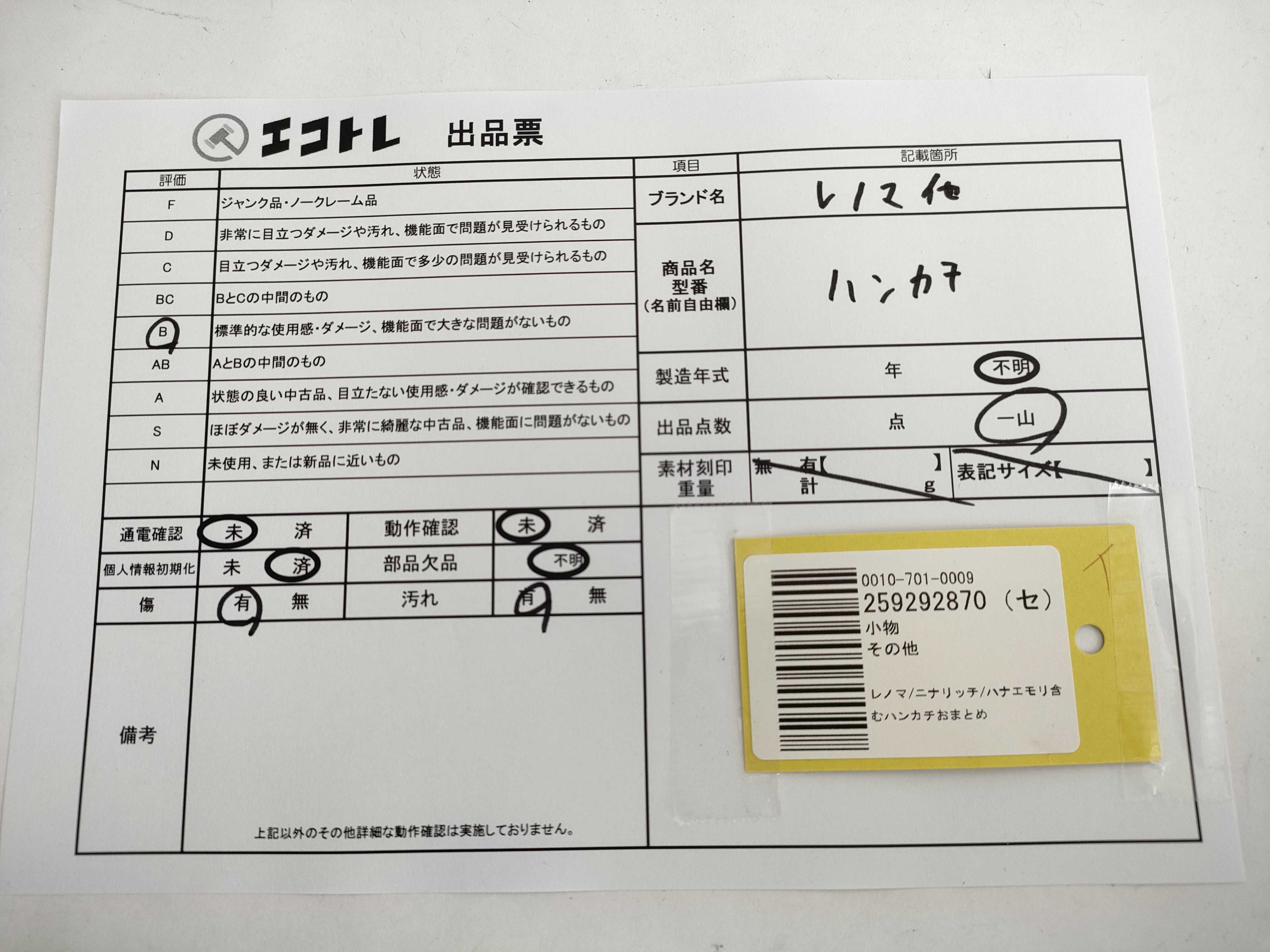 商品内容によって、JITBOXなどでの発送となる可能性がございます事ご理解下さい。年式などの商品情報詳細は写真にてご確認願います。※ご入札の際はご利用規約をよくお読みになってからのご参加お願いします。","タイプライン":"","カテゴリ":"小物","形状コード":"その他小物","付属品コード":"","シリアル・シール・型番":""