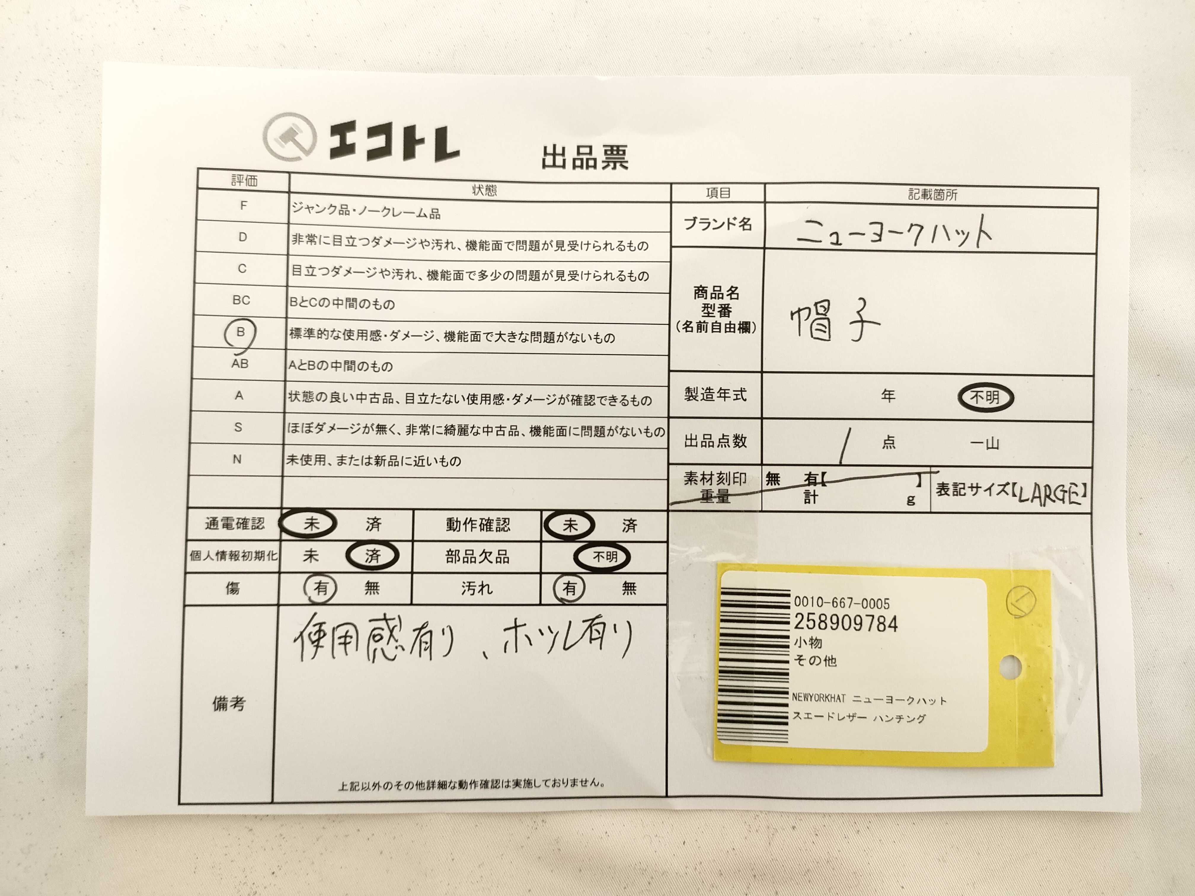 商品内容によって、JITBOXなどでの発送となる可能性がございます事ご理解下さい。年式などの商品情報詳細は写真にてご確認願います。※ご入札の際はご利用規約をよくお読みになってからのご参加お願いします。","タイプライン":"","カテゴリ":"小物","形状コード":"その他小物","付属品コード":"","シリアル・シール・型番":""
