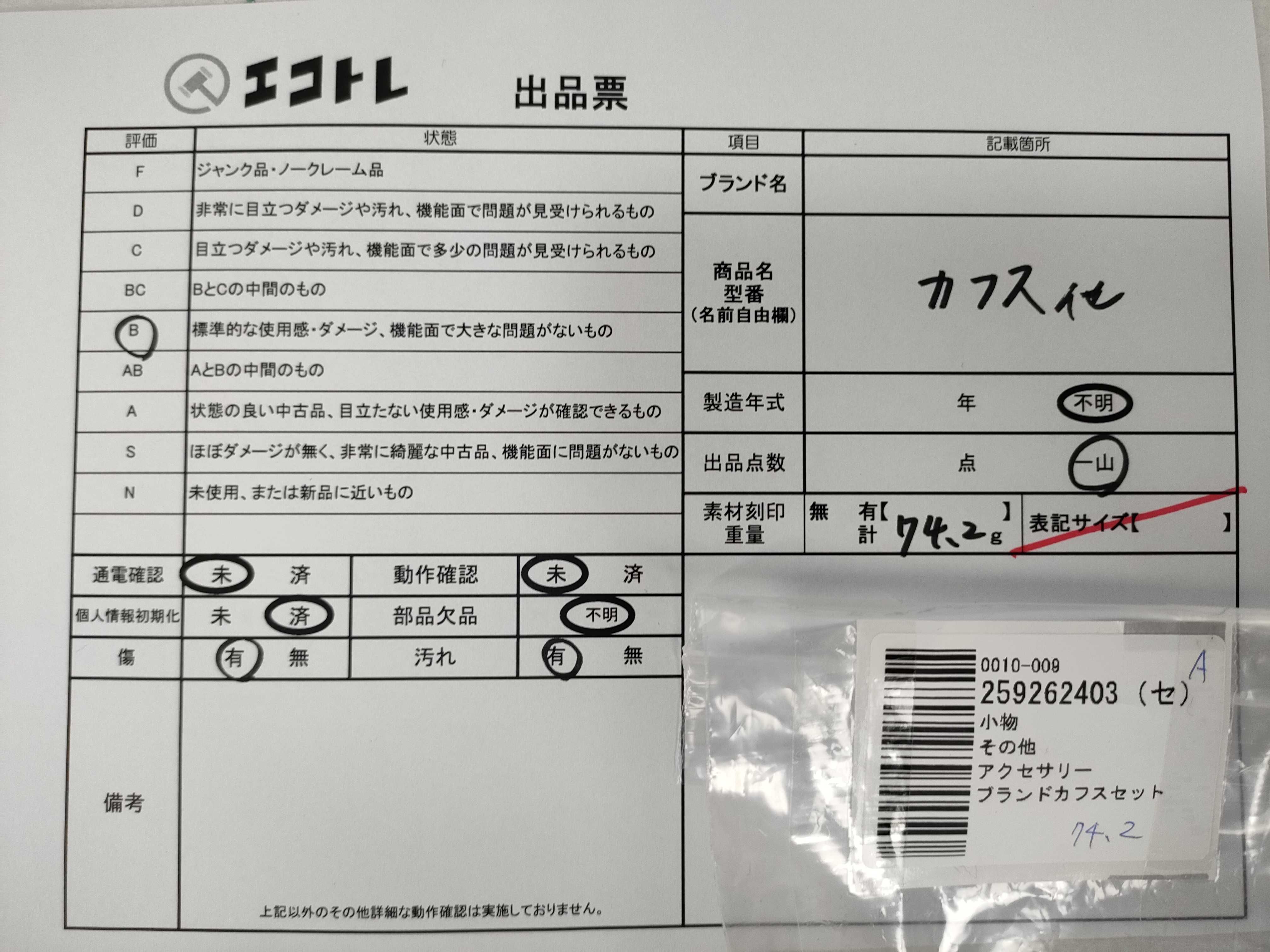 商品内容によって、JITBOXなどでの発送となる可能性がございます事ご理解下さい。年式などの商品情報詳細は写真にてご確認願います。※ご入札の際はご利用規約をよくお読みになってからのご参加お願いします。","タイプライン":"","カテゴリ":"小物","形状コード":"ネクタイピン・カフス","付属品コード":"","シリアル・シール・型番":""