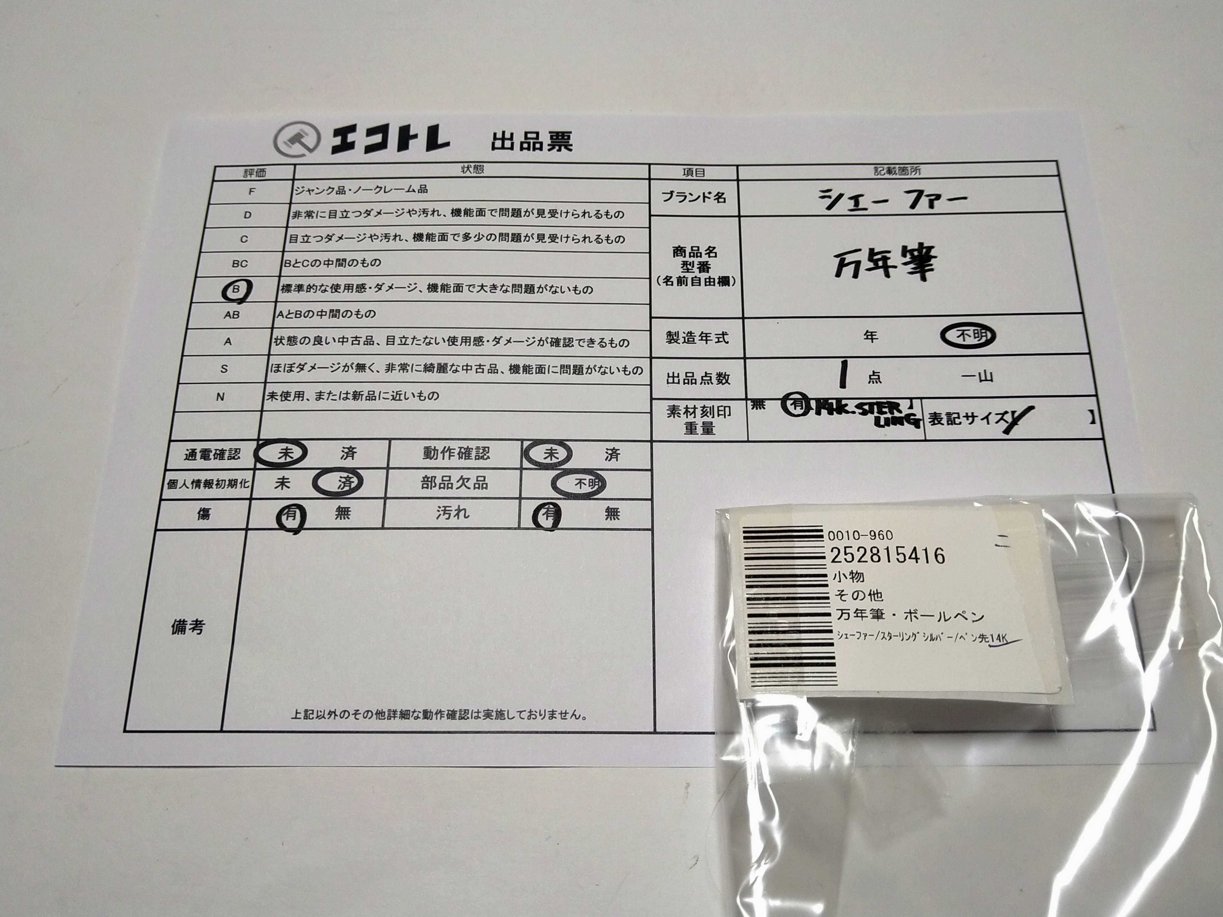 商品内容によって、JITBOXなどでの発送となる可能性がございます事ご理解下さい。年式などの商品情報詳細は写真にてご確認願います。※ご入札の際はご利用規約をよくお読みになってからのご参加お願いします。","タイプライン":"","カテゴリ":"小物","形状コード":"ペン・万年筆","付属品コード":"","シリアル・シール・型番":""